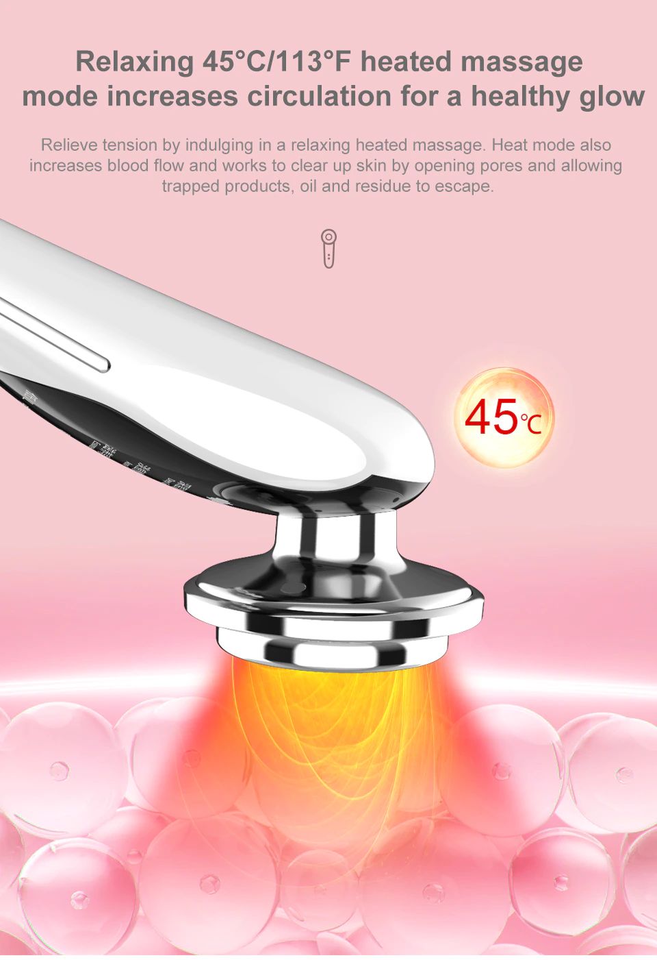 45 °C + vibration + EMS 마이크로 현재 (마이크로 현재는 장치 단추를 다시 눌러서 끌 수 있습니다)