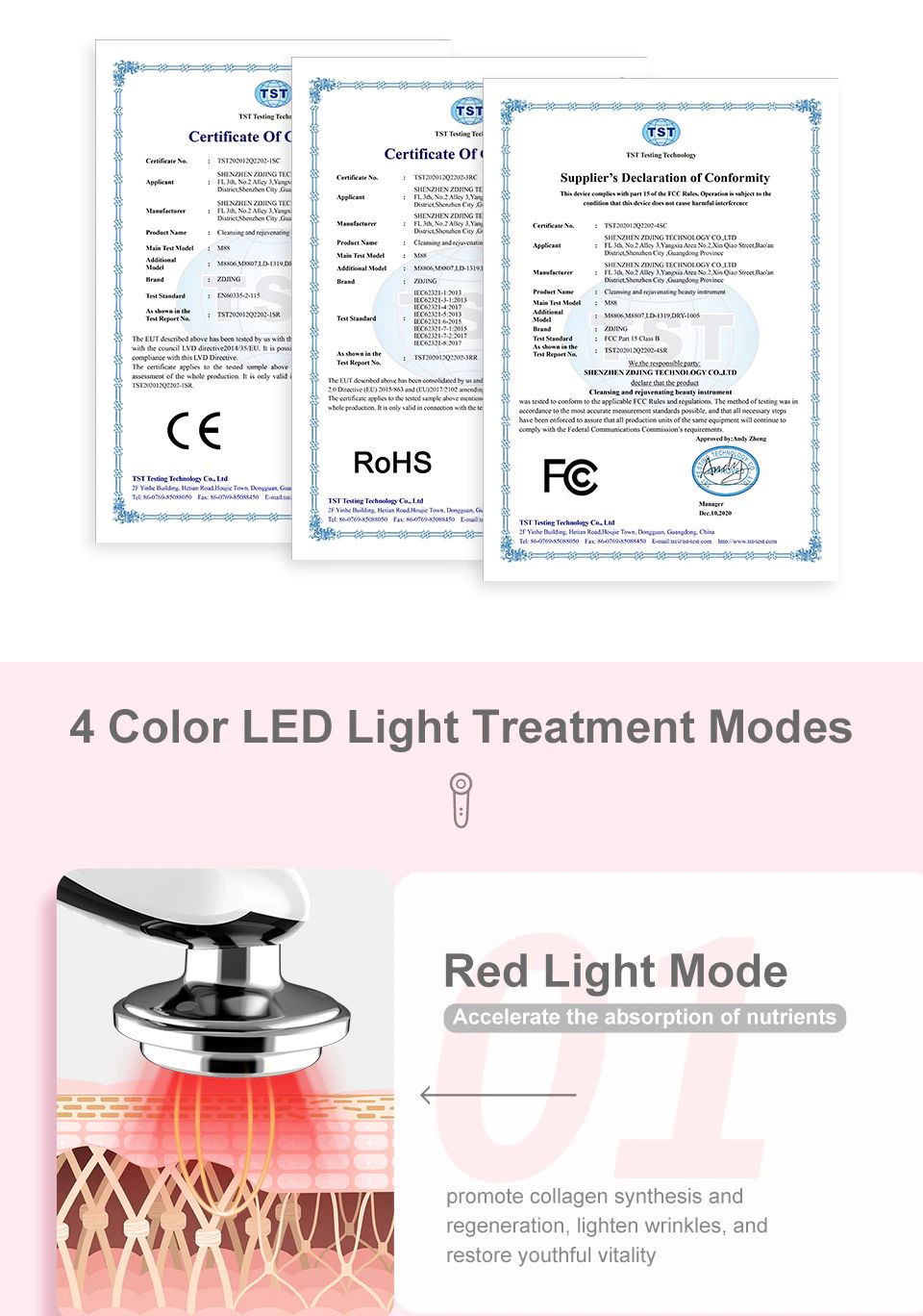 판매자 답변: 4 개의 조명, 붉은 빛이 손상된 피부를 수리하는 데 사용되며, 푸른 빛이 여드름, 진정 피부 및 항염증제를 밝게하는 데 사용됩니다. 주황색 빛은 피부를 밝게하고 염색을 감소시키기 위하여 이용되고, 색깔 빛은 피부를 희게하고 젊어지게 하기 위하여 이용됩니다.