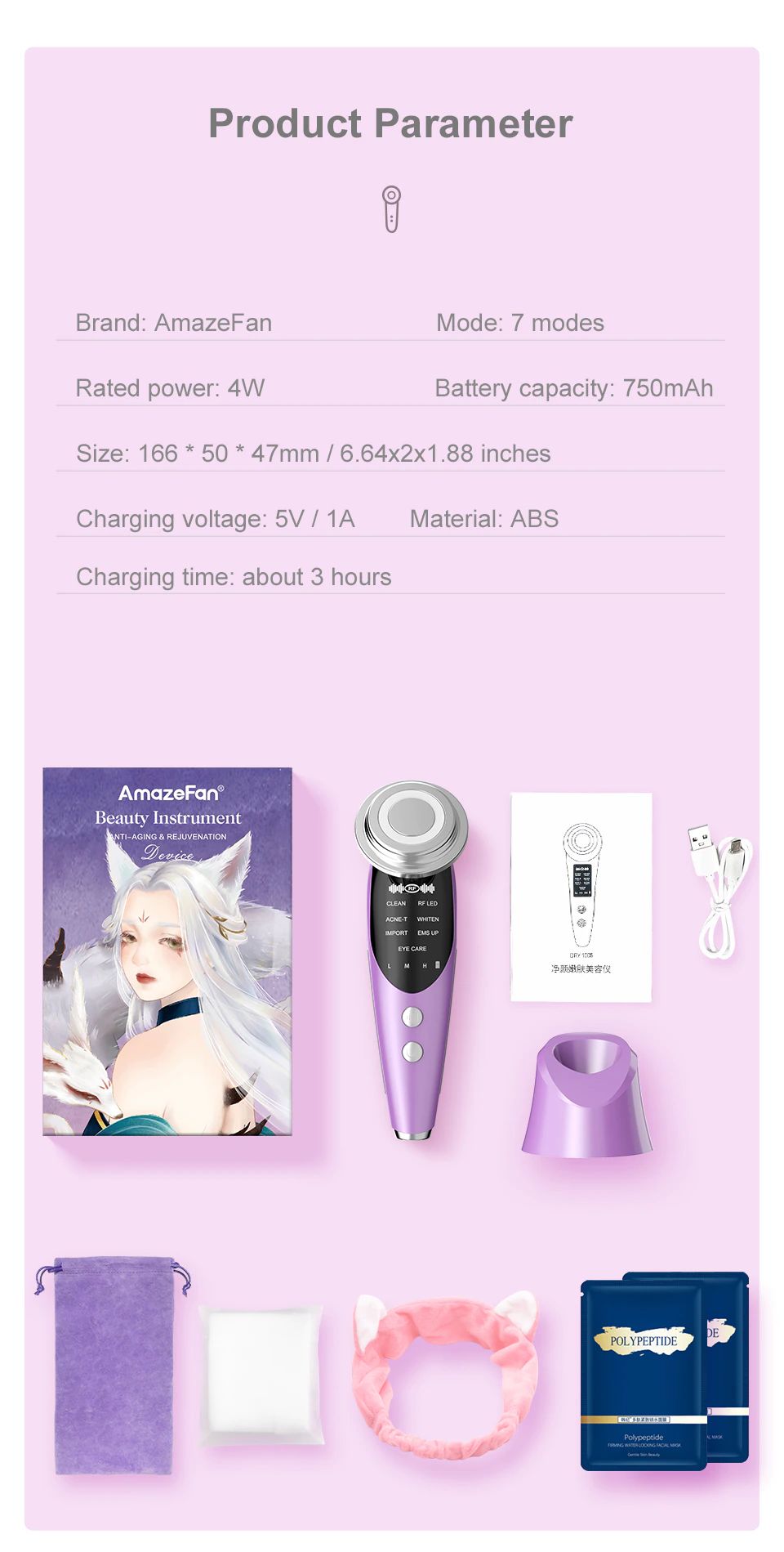 [7 모드] 확고한 피부, 피부 톤을 밝게하고, 주름을 방지하고, 주름을 제거하고, 얼굴을 제거하고, 정화하고 해독시킵니다.