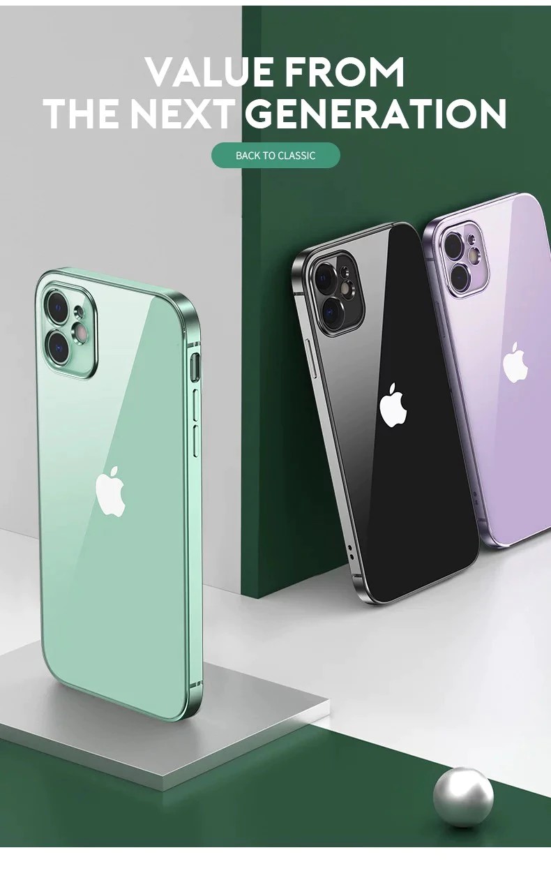 클래식 울트라 얇은 사각형 도금 프레임 보호 소프트 케이스 아이폰 11 프로 최대 11Pro 6.1 12 투명 지우기 뒷면 커버