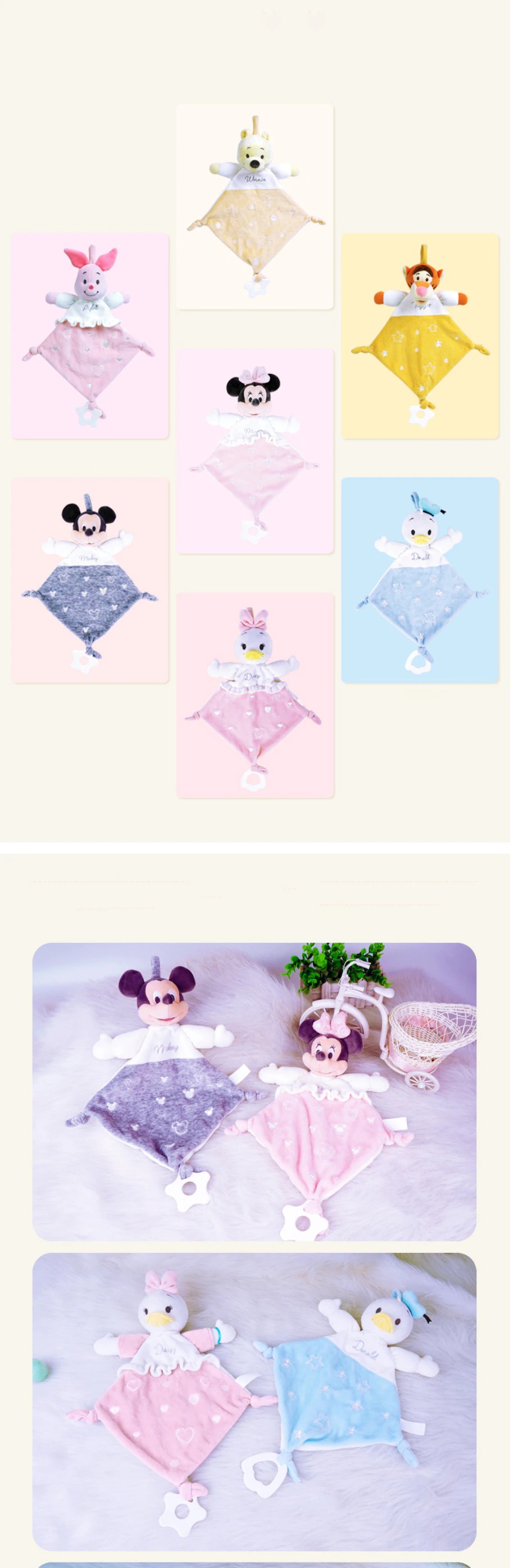 디즈니 베이비 플러시 핸드 Puppe 미키 소프트 Appease 타올 미니 수딩 인형 잠자는 담요 딸랑이 유아 완구 어린이 인형