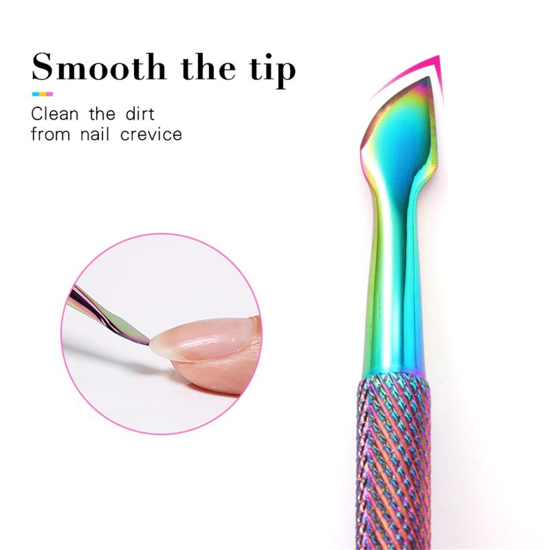 죽은 피부 포크 못 표피 및 청소 못 가장자리를 자르기를 위한 이중 끝 기능.