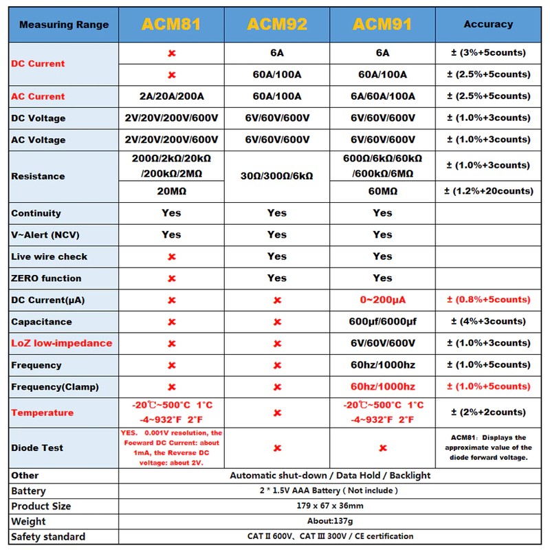 ● 죔쇠 미터 (ACM81/ACM82/ACM91) 의 BSIDE 시리즈는 다른 시험 기능으로 갖춰집니다. 두 가지 색상 (파란색과 검정색). 필요성을 충족시키기 고객 합리적인 가격.