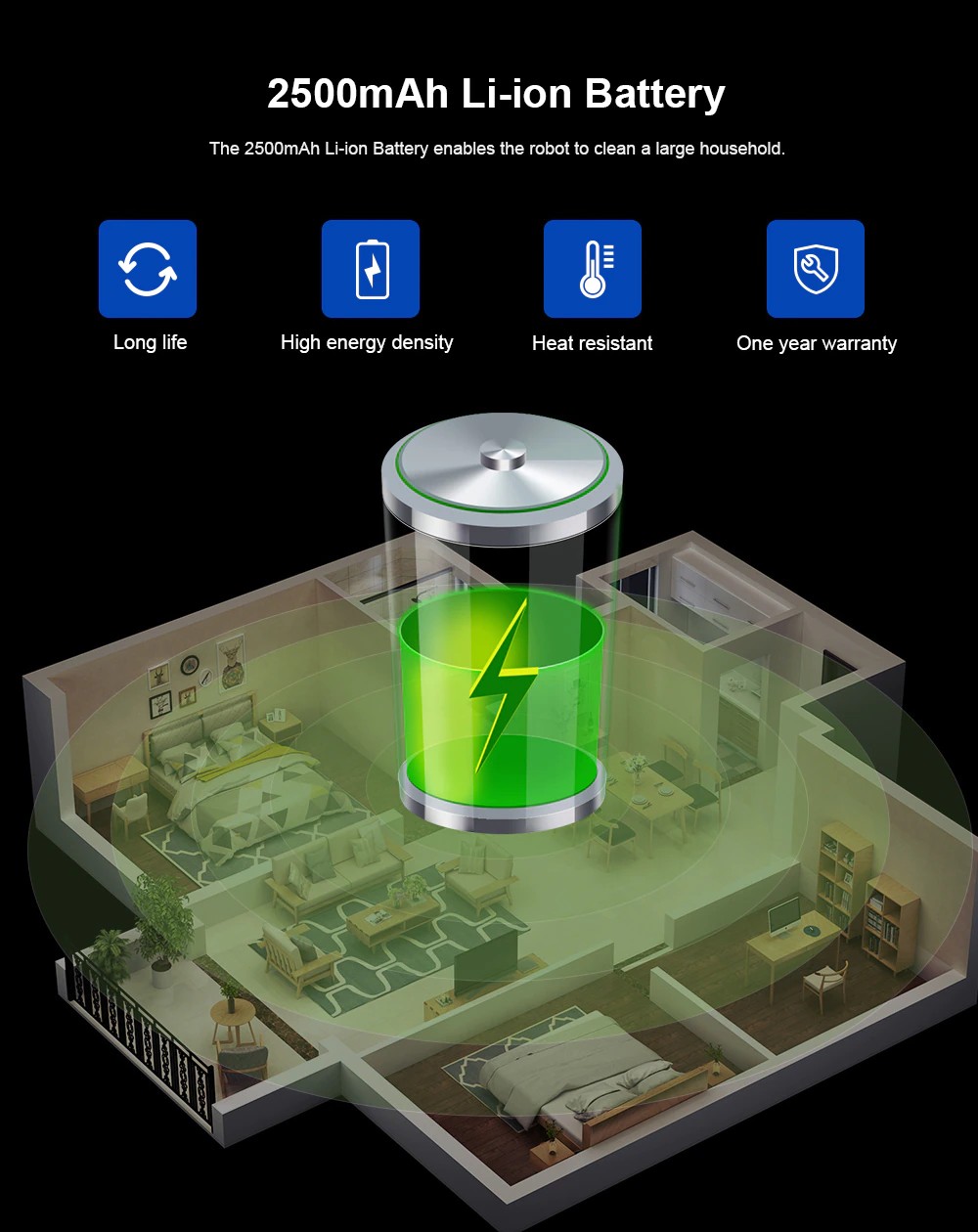 배터리: 2500mAh 리튬 이온 배터리