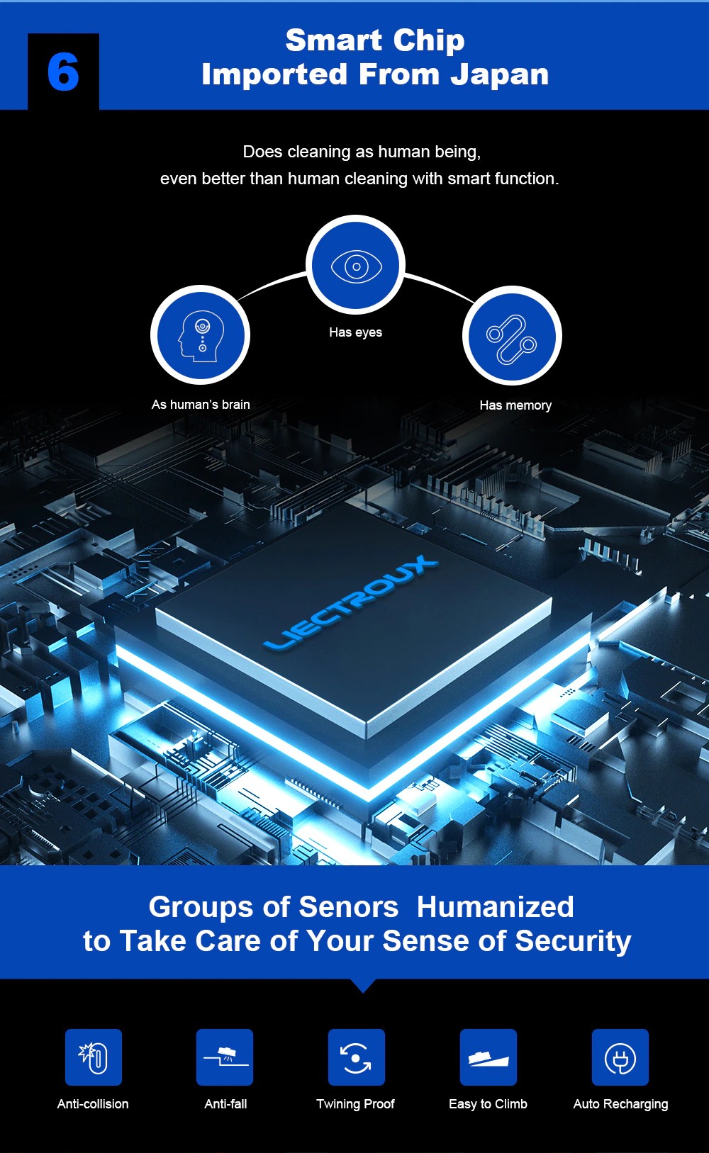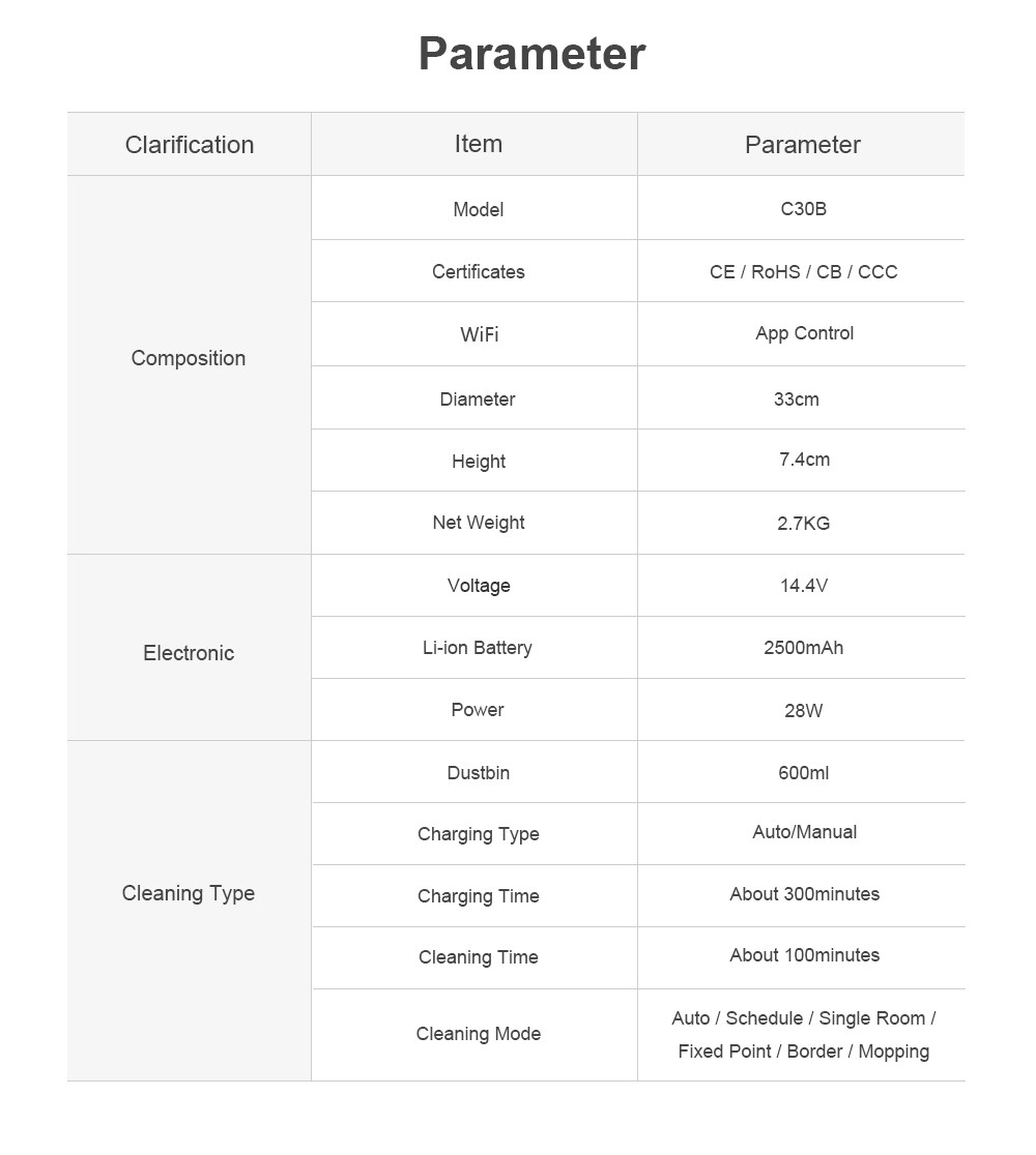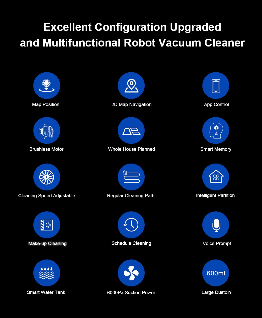 1.로봇은 주위의 전반 환경을 파악하여CPU내부에 지도를 만들고 플랜에 따라 방을 하나씩 청소할 수 있습니다.