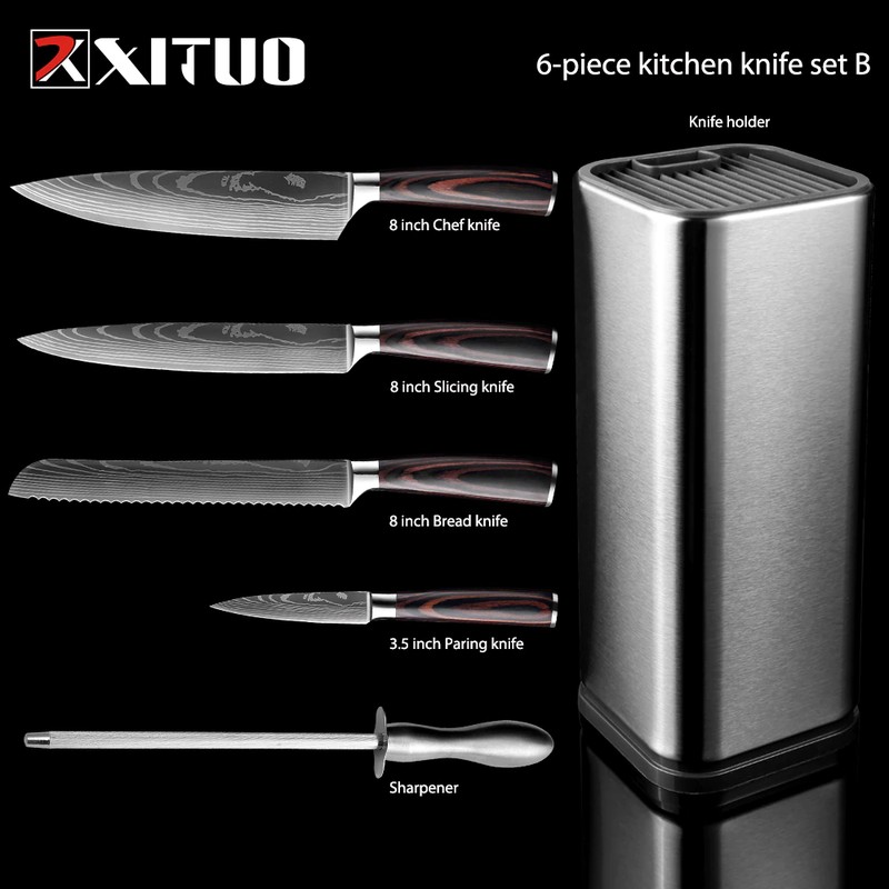 나이프 홀더: 강력하고 소형. 음식을 준비 할 때 귀중한 카운터 공간을 절약하고 주방 용품 및 칼 붙이를 위해 여분의 공간을 남겨 둡니다. 평행 홈은 도구를 서로 만지지 않도록 블레이드를 분리합니다. 블록의 블레이드를 손상시킬 위험이 없습니다.