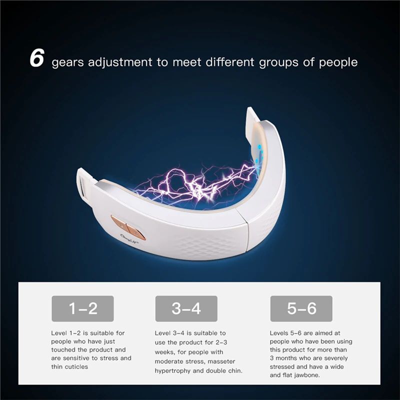 수준 3-4 는 적당한 긴장, masseter 비대 및 두 배 턱을 가진 사람들을 겨냥한 제품 사용의 2-3 주 동안 적당합니다.