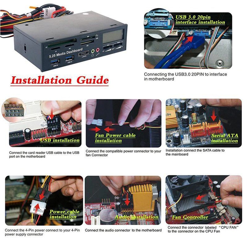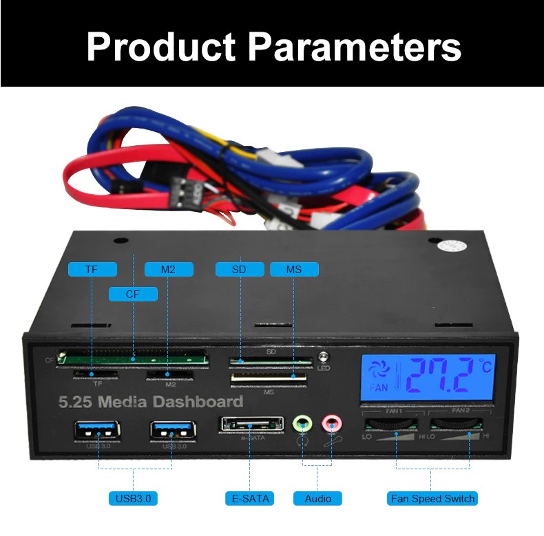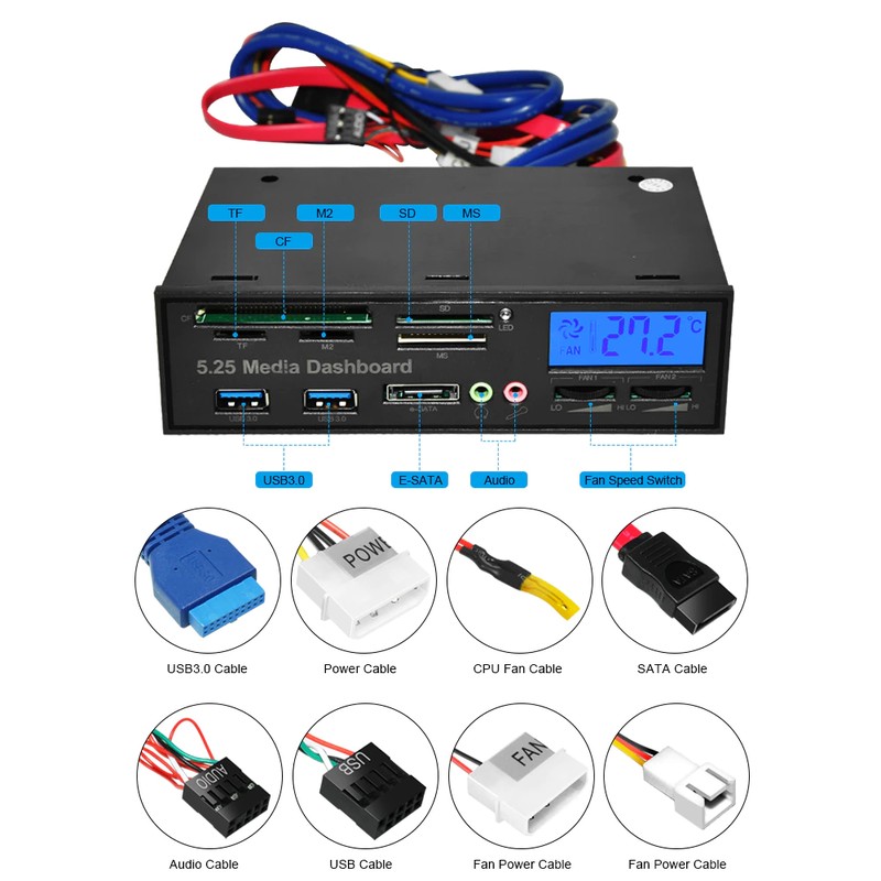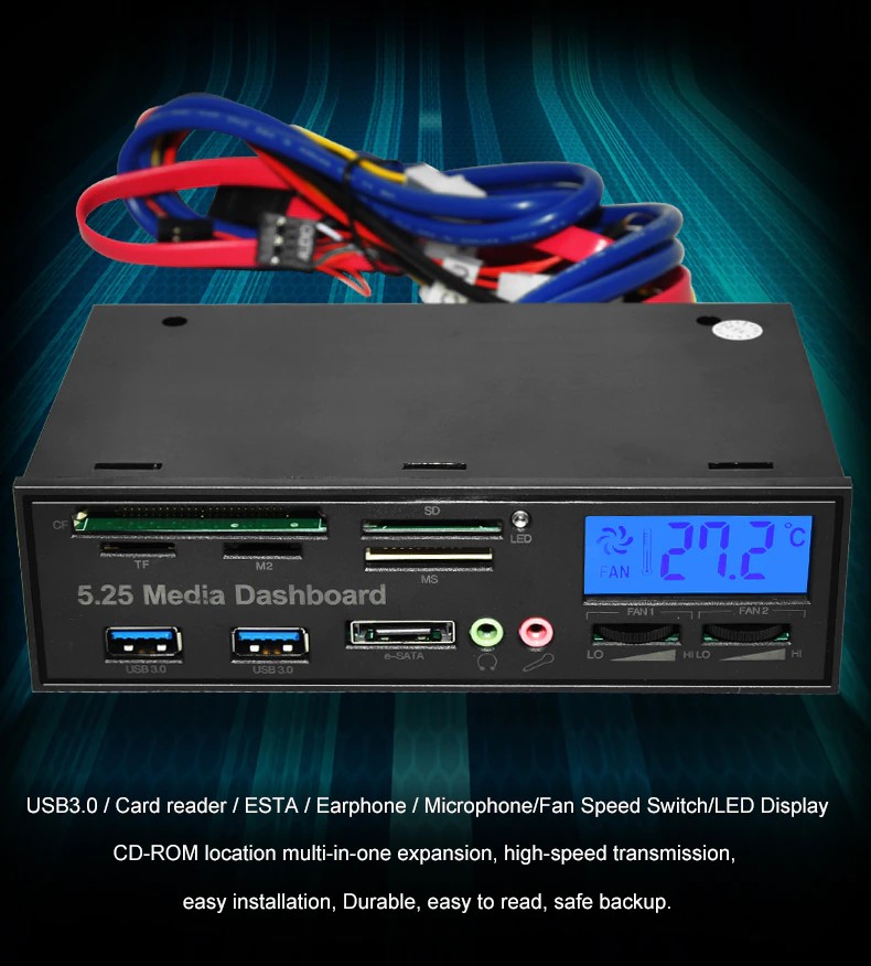 1 x 525F 5.25 인치 PC 다기능 대시 보드 미디어 전면 패널
