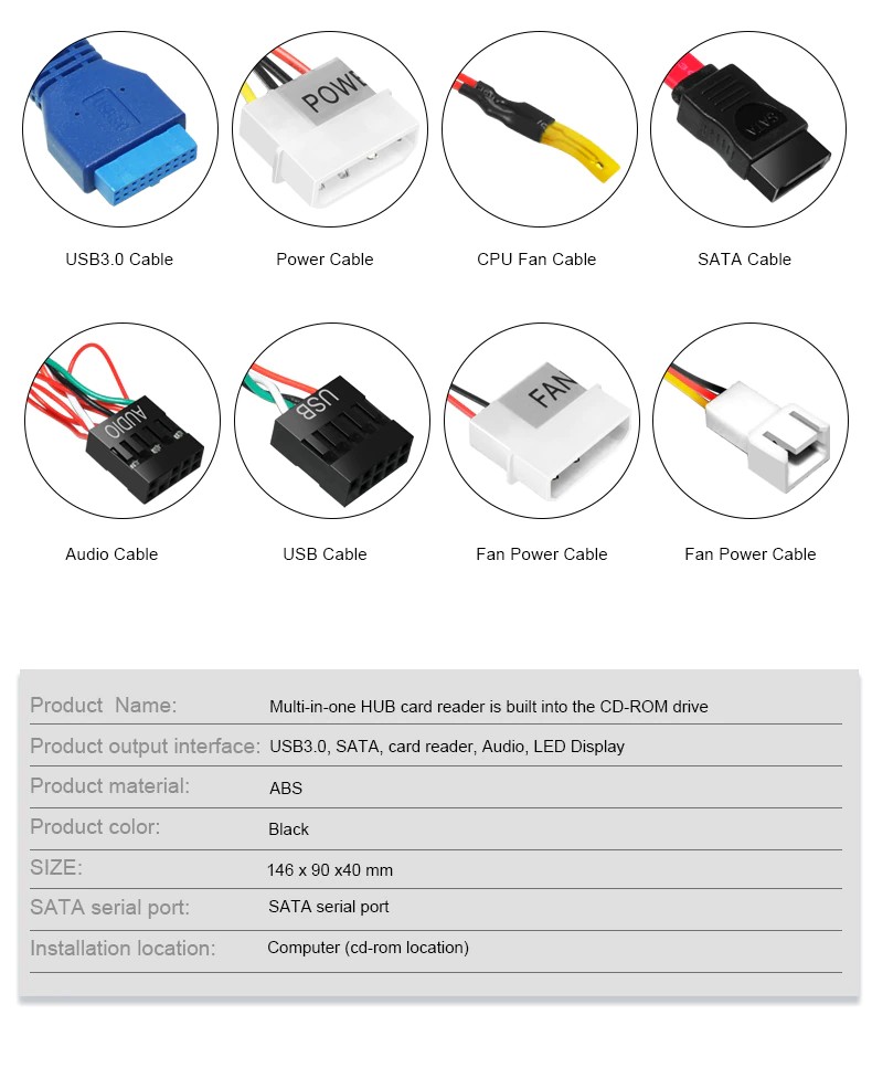 1 * 전원 | 35cm (4 핀 | DC/12V/5V | 옵션 | USB 장치에 추가 전원 공급)