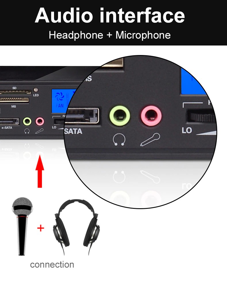 하드 디스크 인터페이스: 1 x SATA 포트 (1.5 기가바이트/초 미만), 1 x eSATA 포트 (3 기가바이트/초 미만 | 핫 스왑 지원), 1x4 핀 전원 포트 (DC 12V/5V), 모든 SATA/eSATA HDD/SSD 하드 디스크와 호환