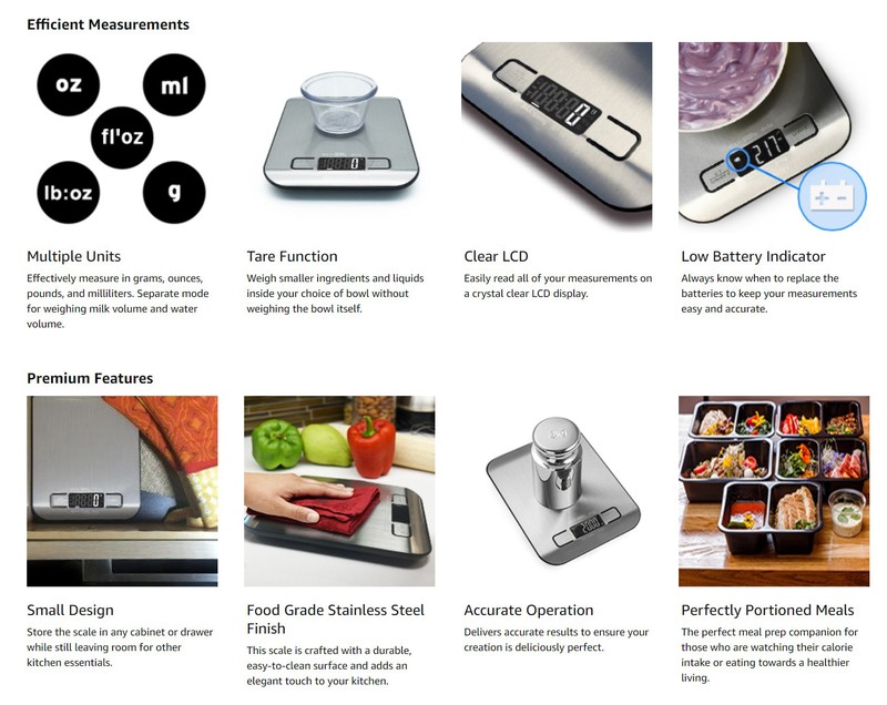 디지털 다기능 식품 주방 규모, LCD 디스플레이 (실버) 와 11lb/22lb 5kg/10kg 스테인레스 스틸 플랫폼