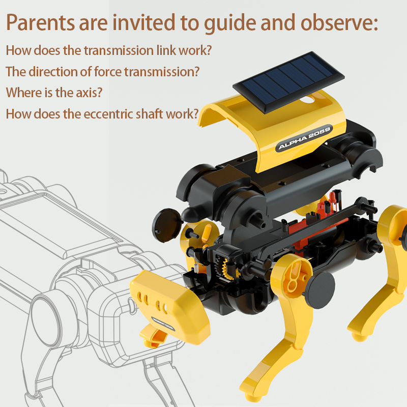 4 배 생체 공학 로봇 시리즈 제품은 어린이의 실습 능력 및 창의력을 향상시킬 수있는 작은 부품에 의해 조립됩니다. 제품은 큰 기어를 구동하기 위해 모터의 작은 기어에 의해 구동되며 기계 작업의 원칙을 배울 수 있습니다. 녹색 기술, 배터리 필요 없음. 스마트 어셈블리, 쉽고 빠른! 스크루 드라이버, 접착제 또는 철사 없음! 집합이 완료된 후에 햇빛이 있는 한, 태양 전지판은 전기 에너지로 운동 에너지로 전기 에너지를 개조하기 위하여 자전하기 위하여 모터와 장치를 몰기 위하여 가벼운 에너지를 개조합니다.