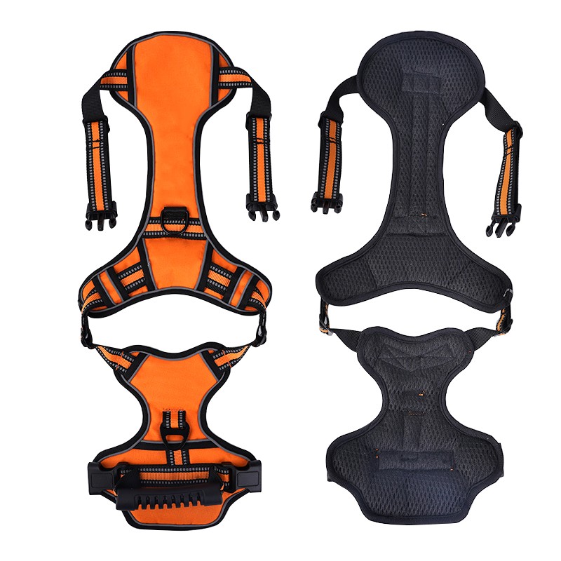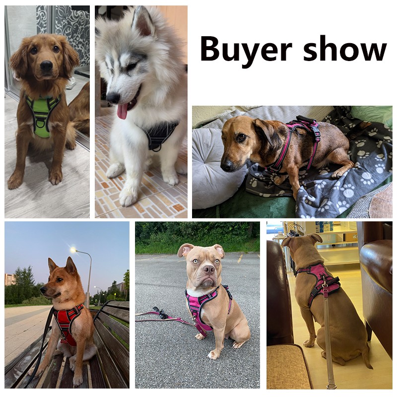 강화 된 웨빙이있는 견고한 금속 가죽 끈 부착 점 2 개, 편안한 산책을위한 이겠지 및 뒤를위한 전면 클립. 인간 환경 공학 디자인, 당기는 압력은 질식 막기 위하여 몸에 균등하게 배부됩니다.