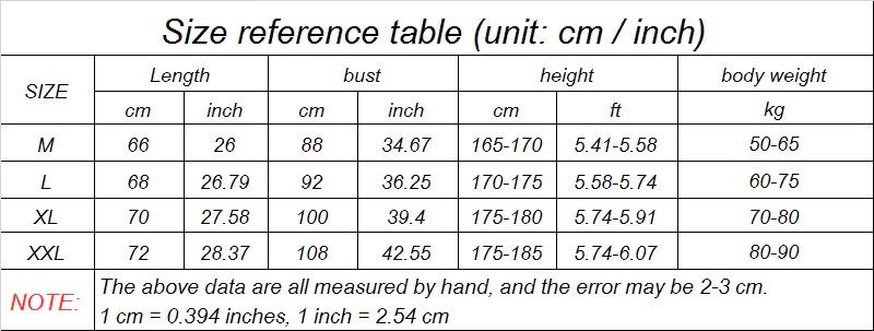 참고: 수동 측정에는 2-3 cm의 오차가있을 수 있습니다, 크기 선택을 위해 이 요인을 고려하십시오, 감사합니다