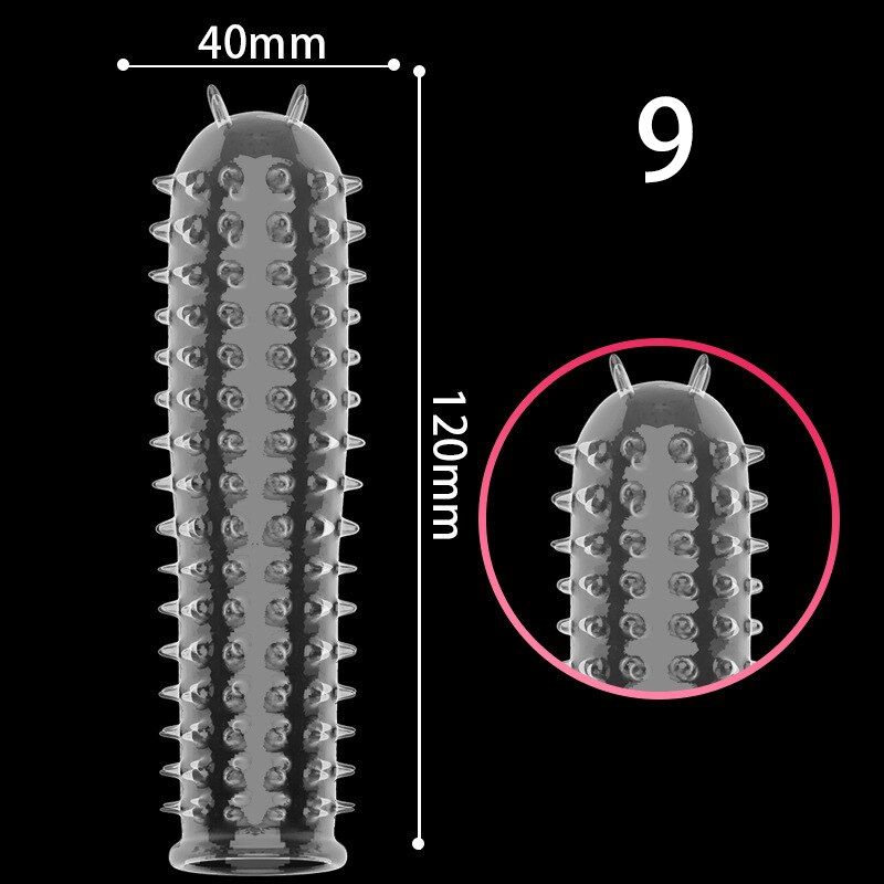 확장 재사용 가능한 콘돔 페니스 슬리브 남성 확대 시간 지연 스파이크 Clit 마사지 커버 크리스탈 클리어 콘돔 성인 섹스 토이