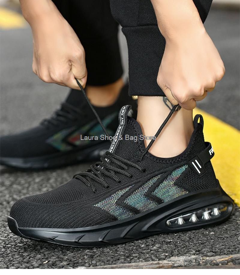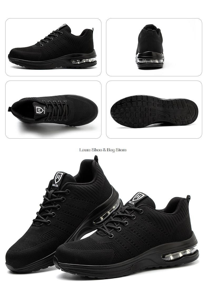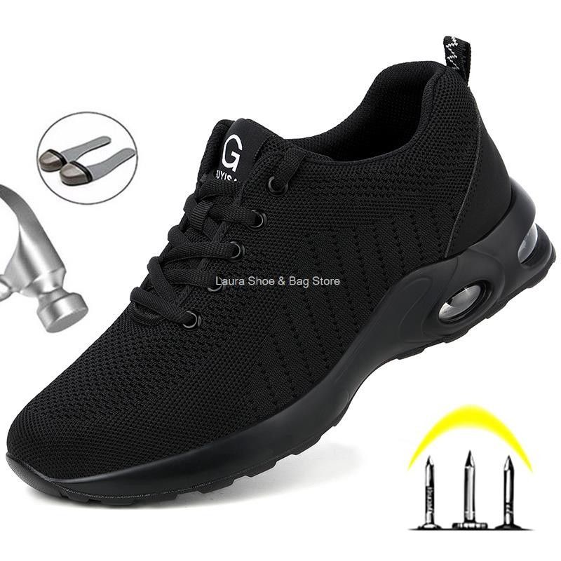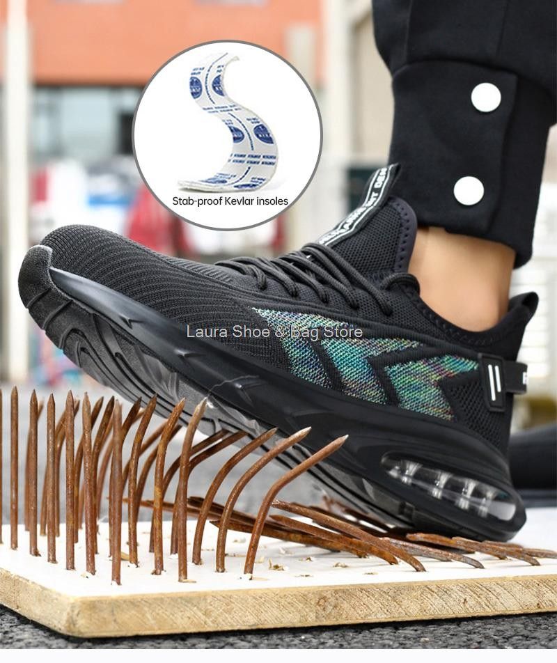 새로운 안전 신발 남자의 작업 신발 공기 쿠션 케블라 찌르기 증거 작업 스 니 커 즈 남자 안전 신발 철강 발가락 남성 통풍