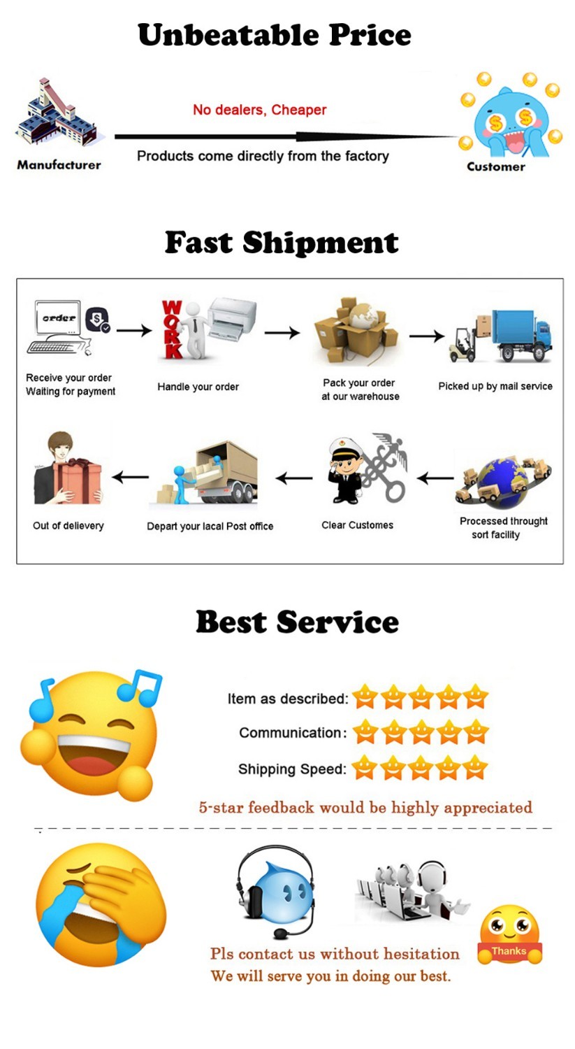 따뜻한 알림: 제품 포장 상자는 우리 상점의 로고를 수행하지 않으며 패키지에 청구서가 없습니다. 당신은 당신의 고객에게 그것을 직접 보낼 수 있습니다. 나는 우리가 오랫동안 행복하게 협력 할 수 있기를 바랍니다!