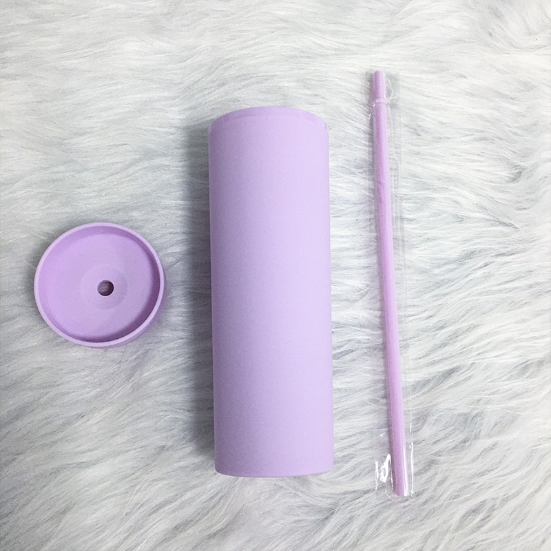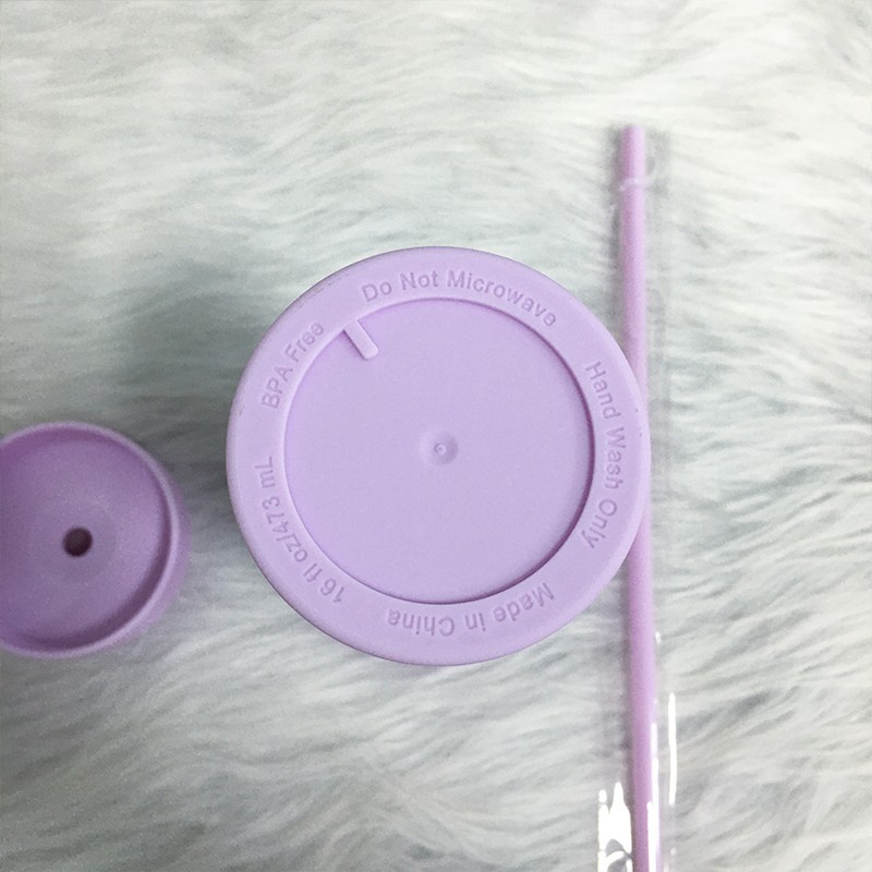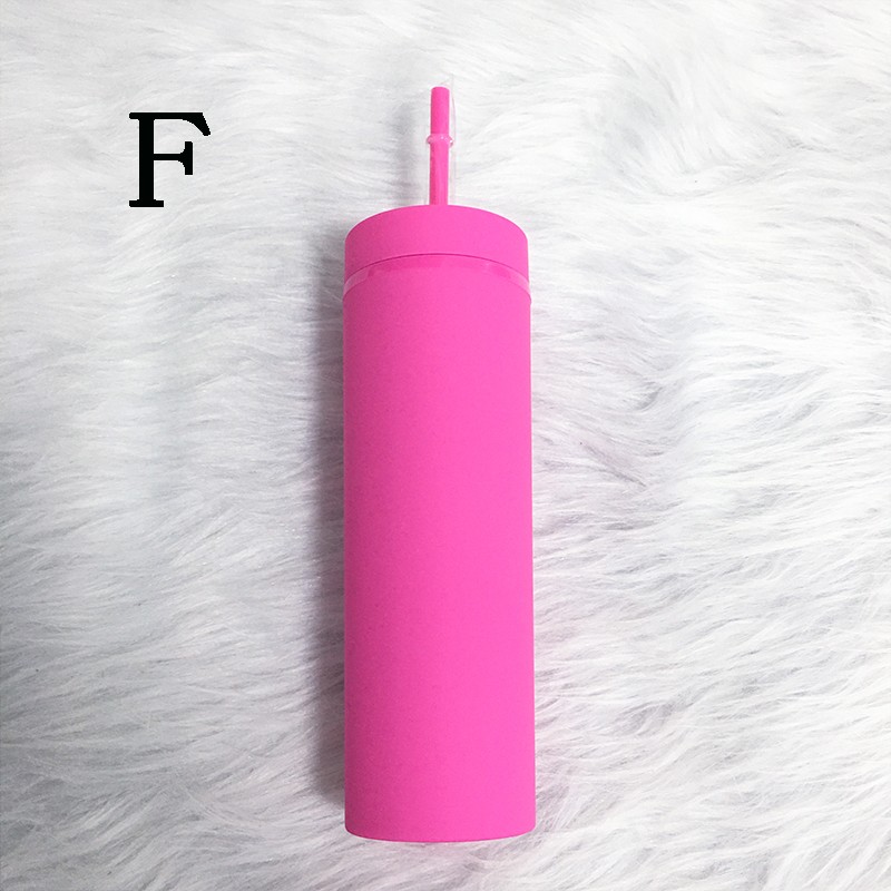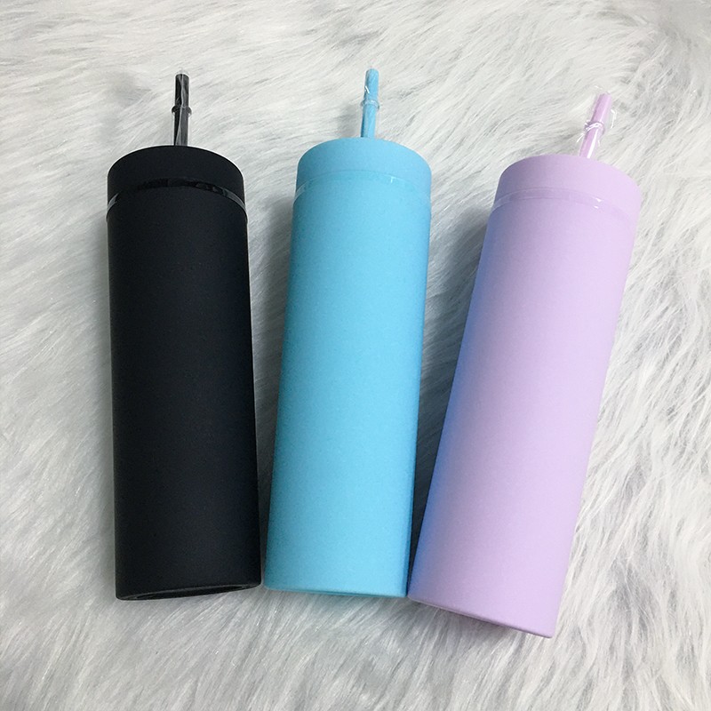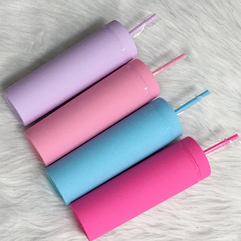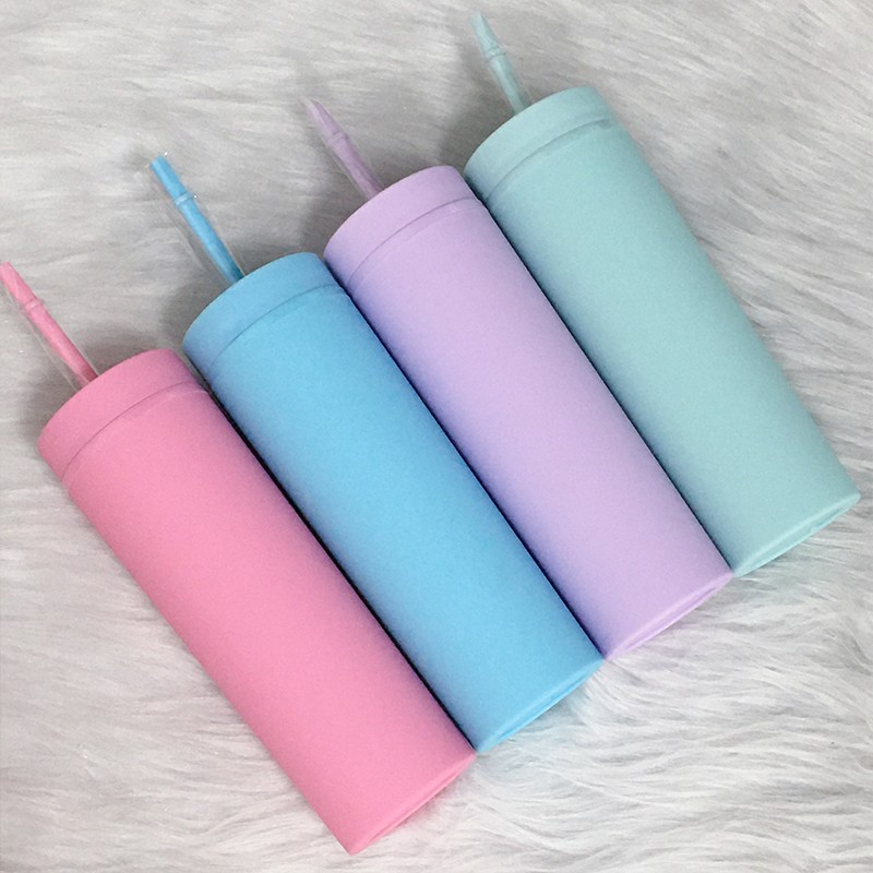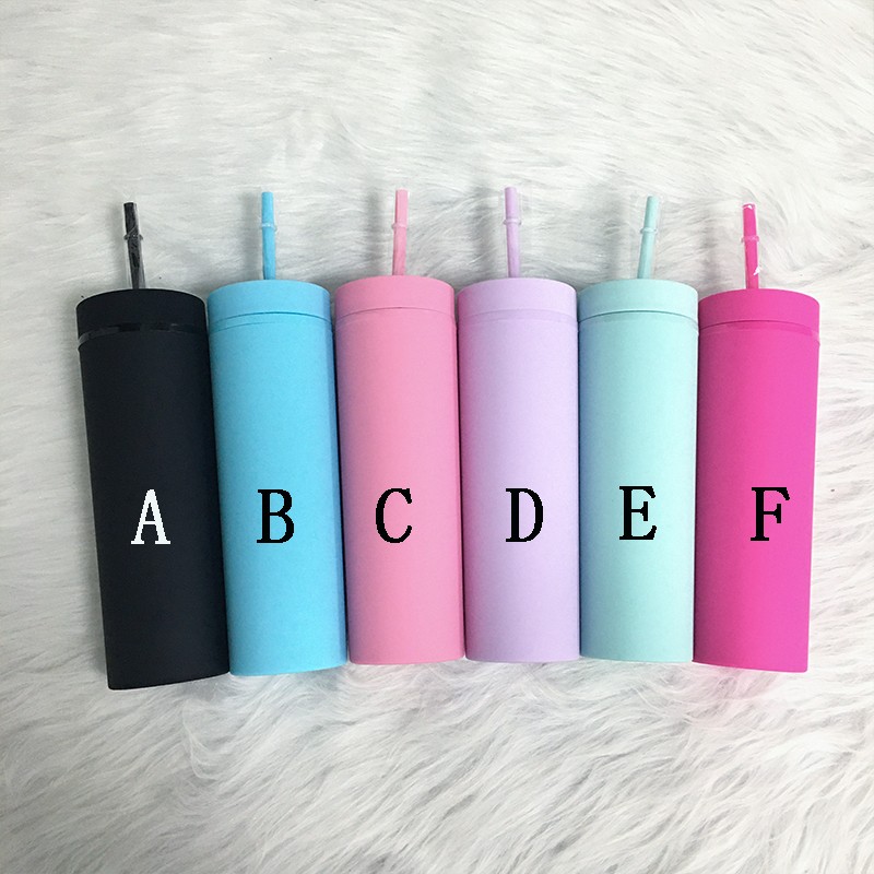 뜨거운 판매 16 온스 아크릴 슬림 스키니 텀블러 다채로운 매트 물병 뚜껑 빨 대 더블 벽 새 해 파티 선물
