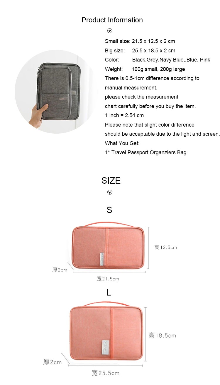 패키지 포함: 1 * 여행 여권 Organziers 가방 | ||