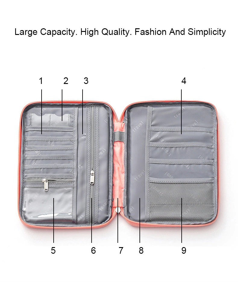 설명: 최고 물자: 튼튼한 찢음 정지 옥스포드 직물로 만드는, 방수 물자, 강한 아연 합금 매끄러운 지퍼는 안전을 위한 당신의 여행 부속품을 지킵니다. 내부는 안전한 저장 공간을 제안하고 찰상, 매끄럽고 그리고 라이트급 선수를 방지합니다. 여권, 신용 Cardsoarding 카드, 펜, 표, 동전, 열쇠, 돈, phonesther 문서, 등을 붙들 수 있습니다. | ||