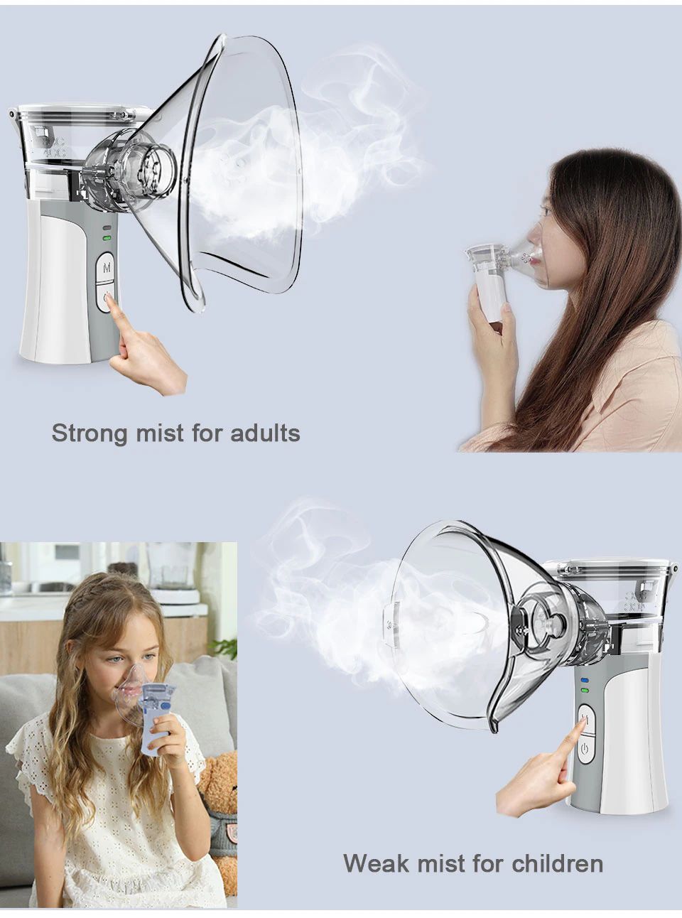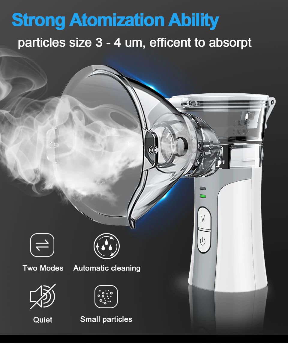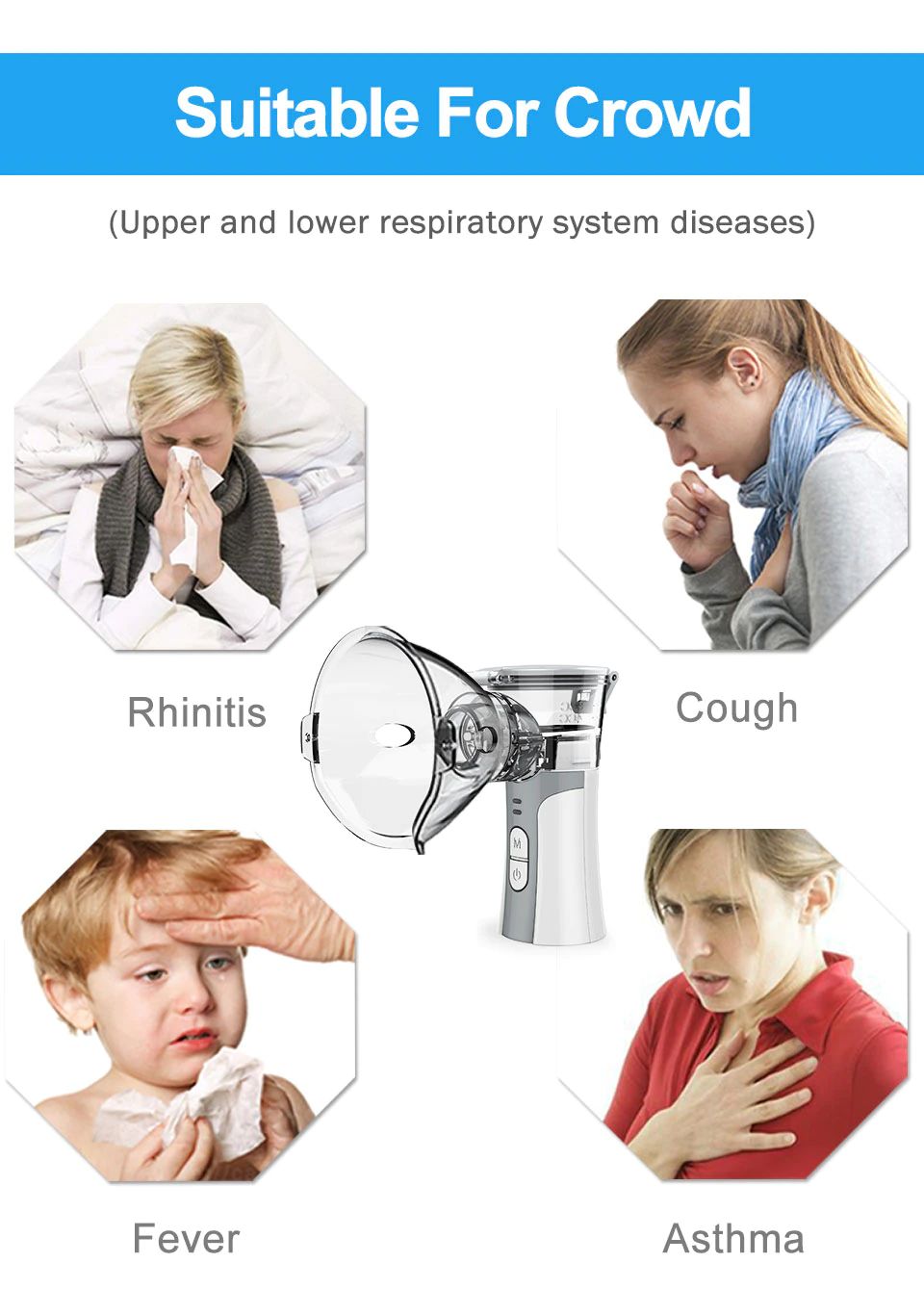 어린이 성인 흡입기 분무기 에어로졸 기계 Nebulizador 천식 흡입 의료 장비 미니 핸드 헬드 메쉬 분무기 컴팩트하고 포켓 사이즈: 가벼운 무게 <90g 기침/비염/천식/기관염/인후염/마른 눈/여성 미용에 적합 보다 효과적: 휴대용 스팀 흡입기, 미세 미스트, 흡수력 향상 매우 조용함: 소음 수준이 25 db 미만입니다. 안전한 처리: 이중 작업 모드 사용시 순수한 물과 에센셜 오일을 사용하지 마십시오.