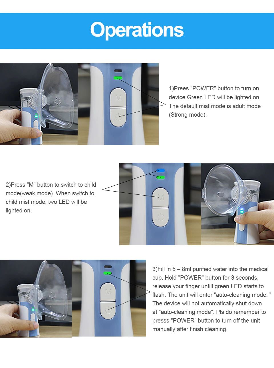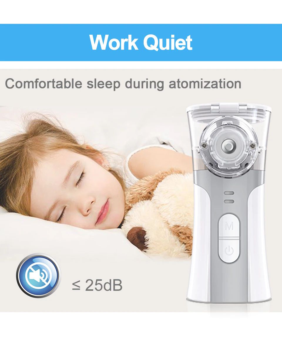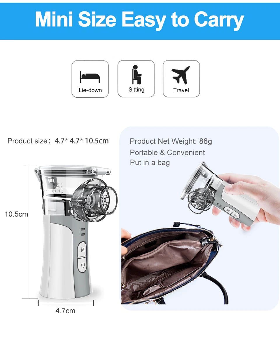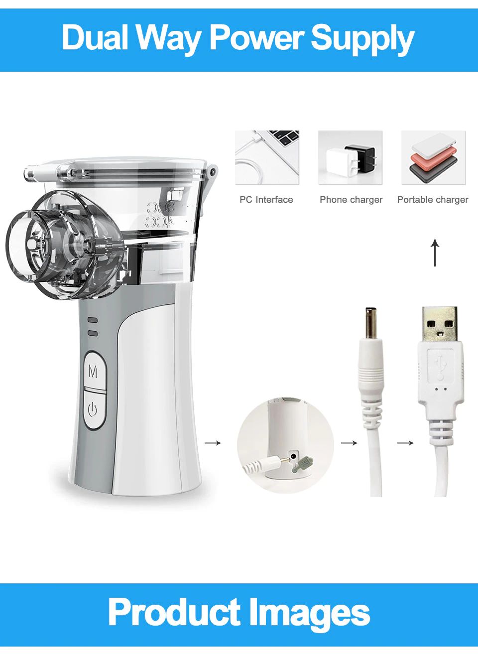 어린이 성인 흡입기 분무기 에어로졸 기계 Nebulizador 천식 흡입 의료 장비 미니 핸드 헬드 메쉬 분무기 컴팩트하고 포켓 사이즈: 가벼운 무게 <90g 기침/비염/천식/기관염/인후염/마른 눈/여성 미용에 적합 보다 효과적: 휴대용 스팀 흡입기, 미세 미스트, 흡수력 향상 매우 조용함: 소음 수준이 25 db 미만입니다. 안전한 처리: 이중 작업 모드 사용시 순수한 물과 에센셜 오일을 사용하지 마십시오.
