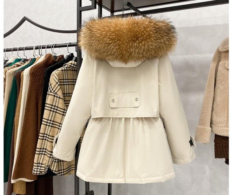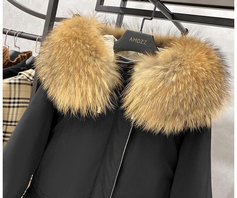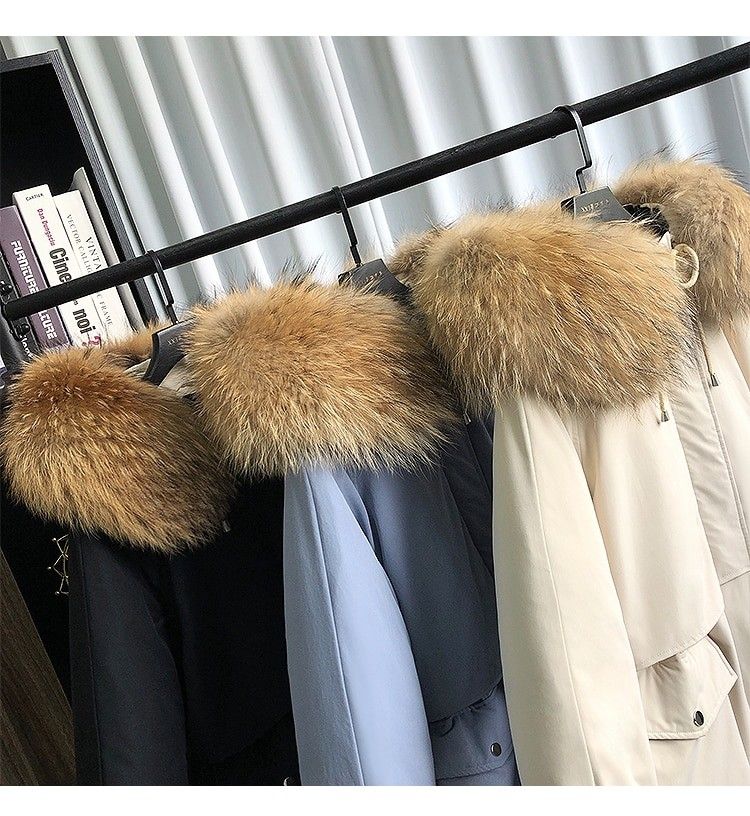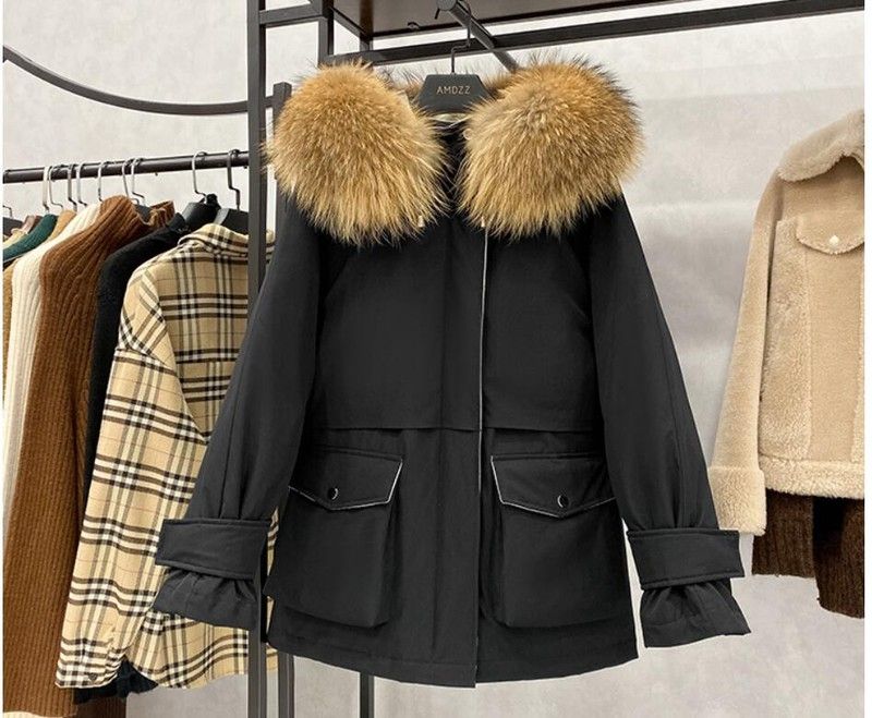 겨울 자켓 여성 파카 : Manteau Femme, 빅 너구리 모피 칼라 파카