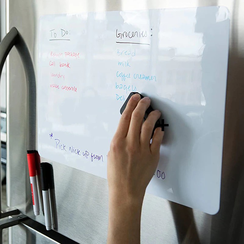 때문에 유연한 소재, 우리는 그것을 그것을 라운드. 메탈 표면의 펫 필름 표면에 부착하기 전에 사용하기 전에 무거운 물체로 몇 시간 동안 곧게 펴주십시오. 매끄러운 쓰기, 청소하기 쉬운 드라이 와이프, 설치가 쉽고, 냉장고 및 기타 금속 표면에 부착하기 만하면됩니다.
