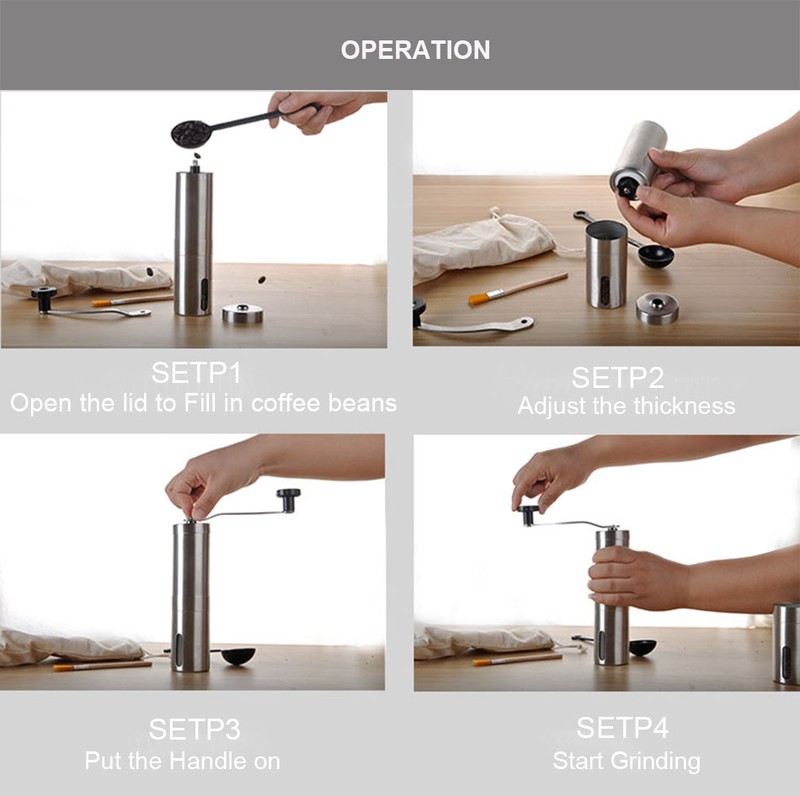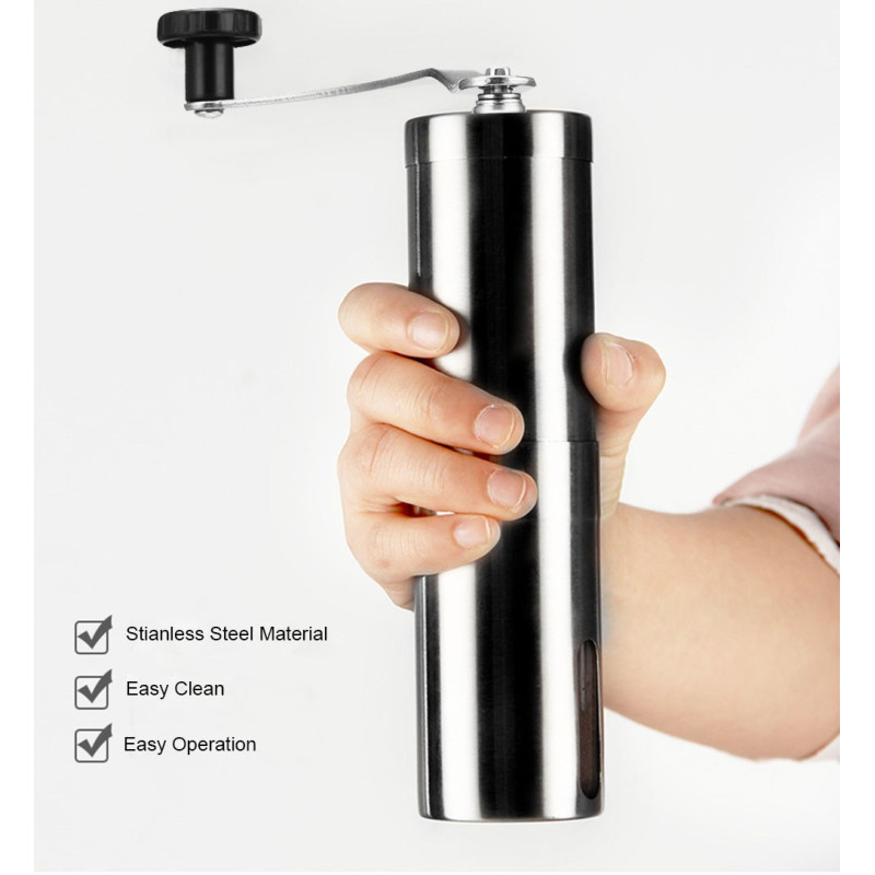 ** Good quality: This manual coffee grinder is made from 304 stainless steel, this material is nontoxic, odourless, rust proof and corrosion resistant.