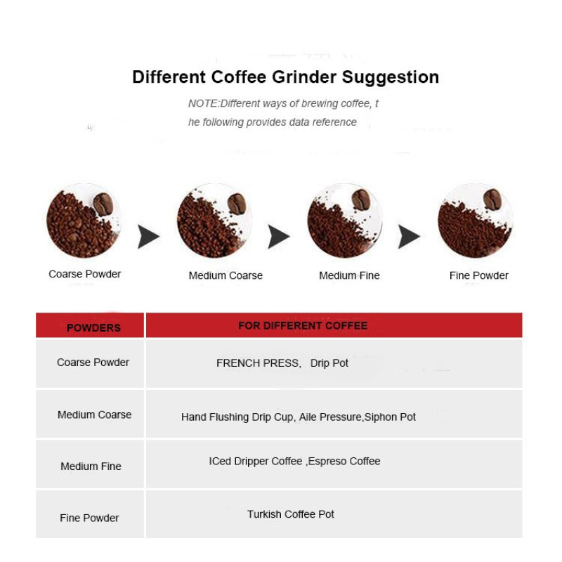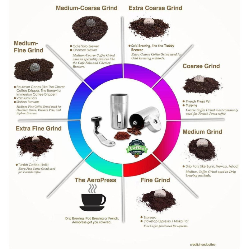 ** Prefer grinding size: Built-in adjustable grind knob ensures you have precision control over the coarseness of your pour over, drip, cold brew, percolator, Espresso.