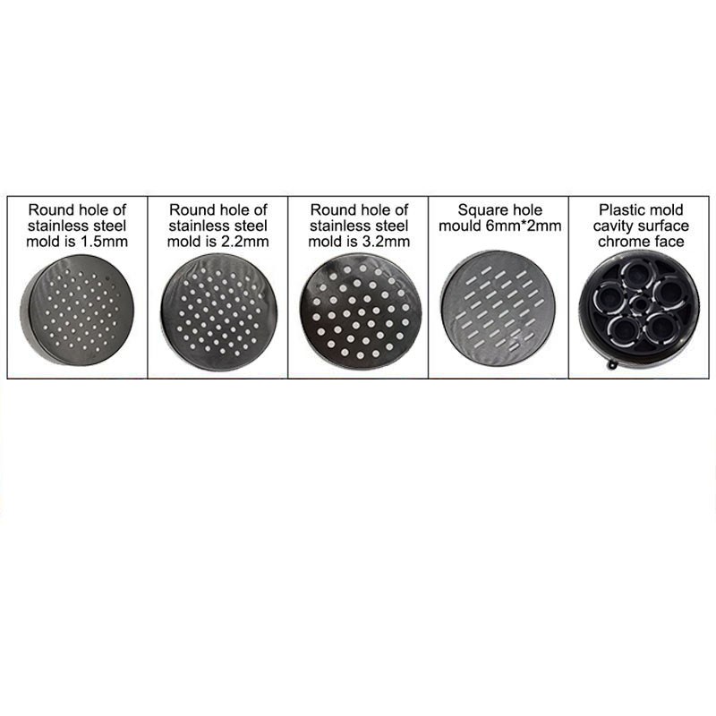 이 noddle 기계는 2 또는 5 형 머리로 오고 있습니다, 따라서 당신은 다른 형 머리를 다른 간격의 국수를 만들기 위하여 선택할 수 있습니다.