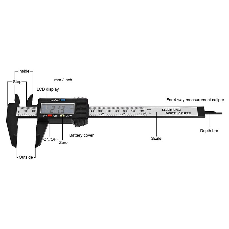 새로운 도착 150mm 6 inch LCD 디지털 전자 탄소 섬유 버니어 캘리퍼스 게이지 마이크로 미터 측정 도구