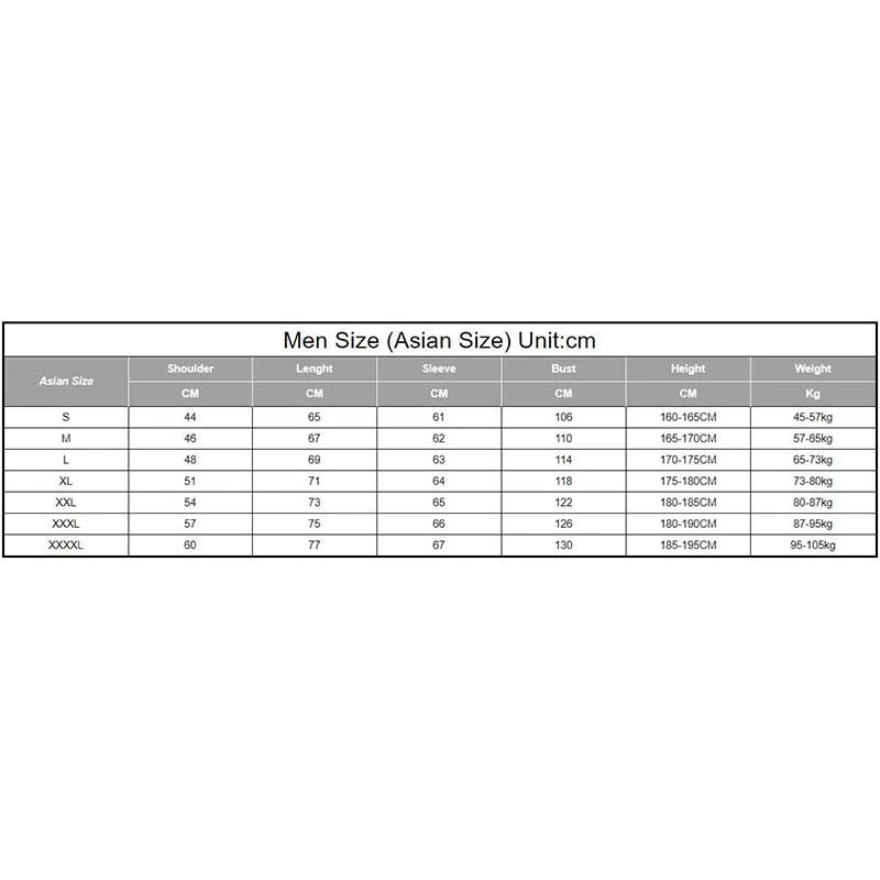 | XXXXL | 60 | 77 | 67 | 130 | 185-195CM | 95-105kg |