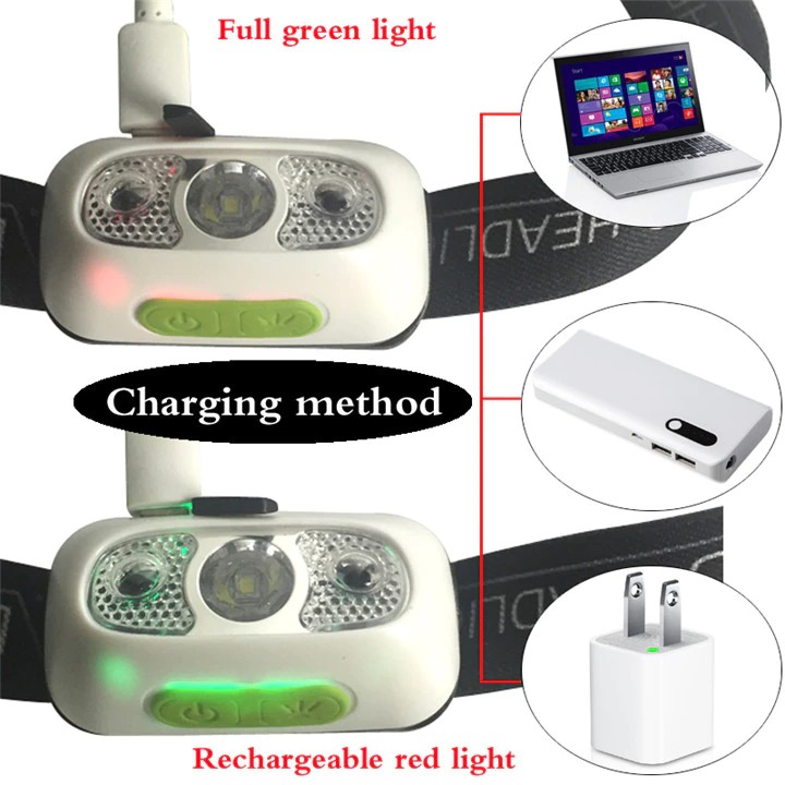 2. 헤드 라이트에는 배터리가 포함되어 있습니다. USB 충전 케이블을 헤드 라이트에 사용할 수 있습니다.