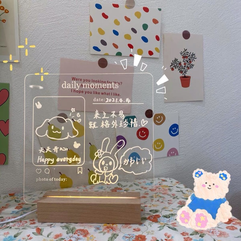 MINKYS 새로운 도착 매일 순간 메모 메시지 보드 머리맡 램프 독서 보조 도구 야간 조명 조절 램프 소녀 문구