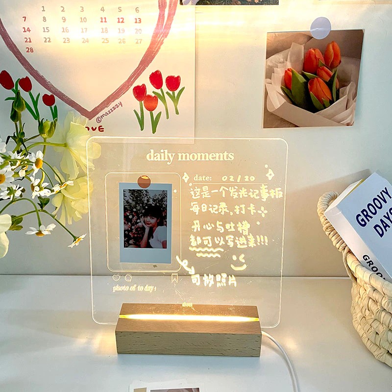 새로운 도착 LED USB 아크릴 메모 메시지 보드 침대 옆 독서 램프