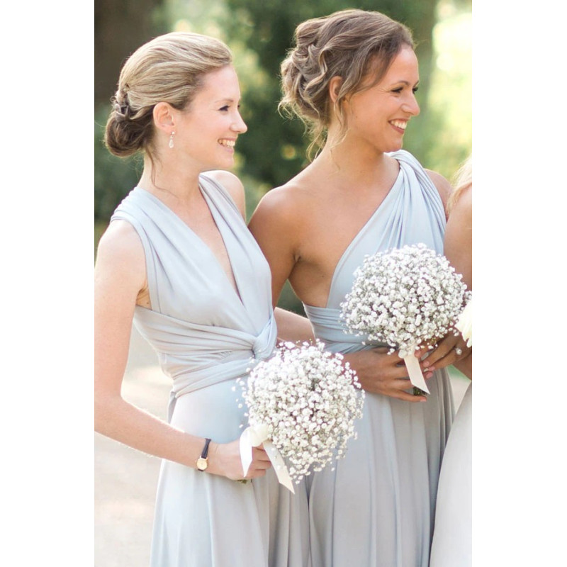 신부 들러리 드레스, 밝은 파란색, 주름 바닥 길이, 컨트리 비치 웨딩 게스트 파티 가운, 저렴한 긴 무도회 드레스
