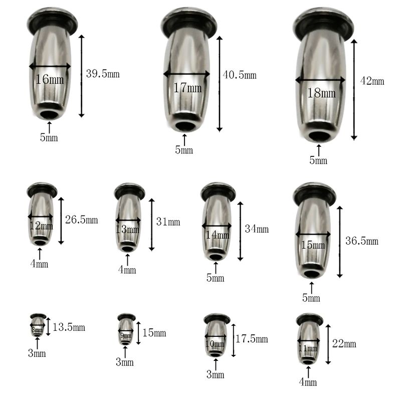 크기: 최대 직경 8mm, 9mm, 10mm, 11mm, 12mm, 13mm, 14mm, 15mm, 16mm, 17mm, 18mm