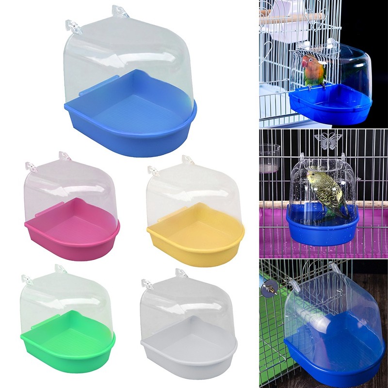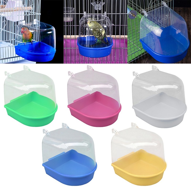 이 새 욕조는 새에 깨끗하게 유지하는 데 도움이되는 반투명 커버가있는 작은 욕조로 새를 제공 할 수 있습니다.