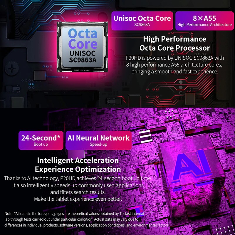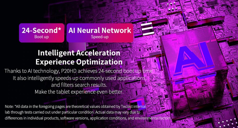 AI 기술 덕분에 p20hd는 24 초 부팅 시간을 달성합니다. 또한 지능적으로 일반적으로 사용되는 응용 프로그램을 가속화하고 검색 결과를 필터합니다. 태블릿 경험을 더 잘 만드십시오.