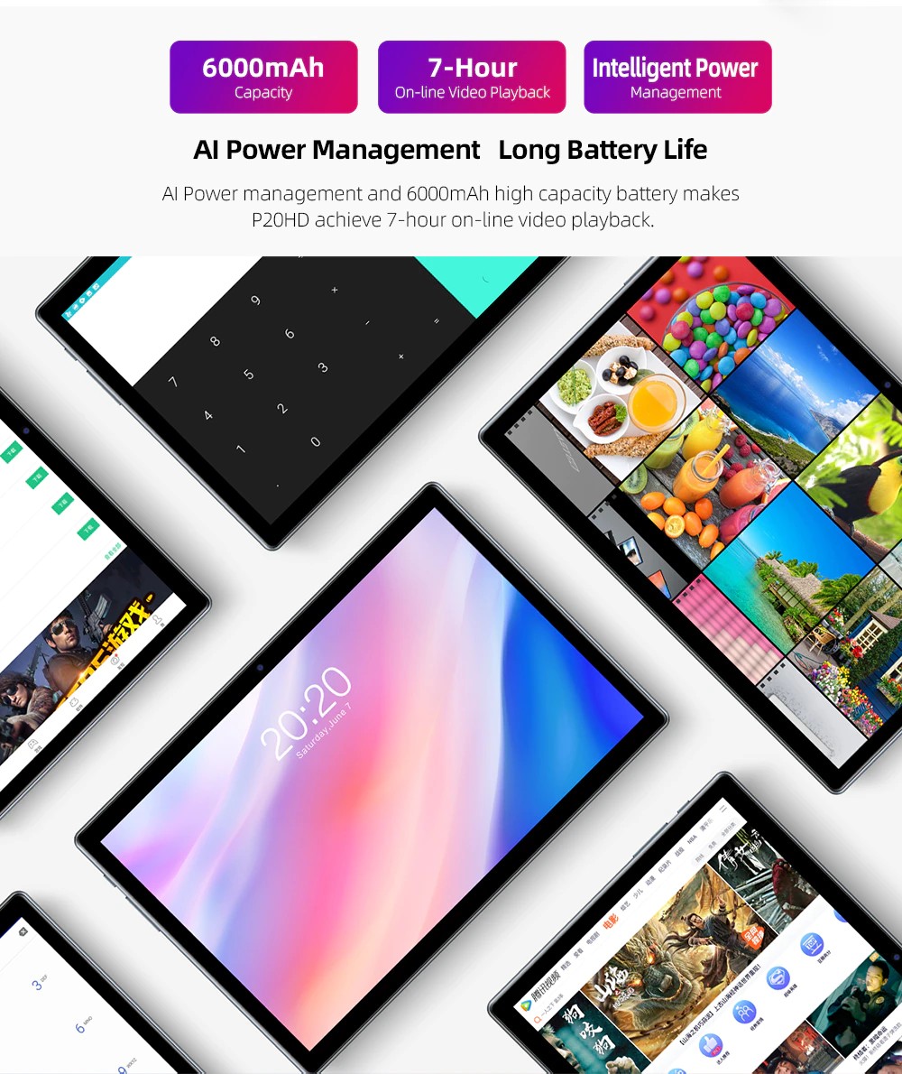 AI 힘 관리 및 6000mAh 고용량 건전지는 p20hd를 7 시간 온라인 영상 재생을 달성합니다 만듭니다.