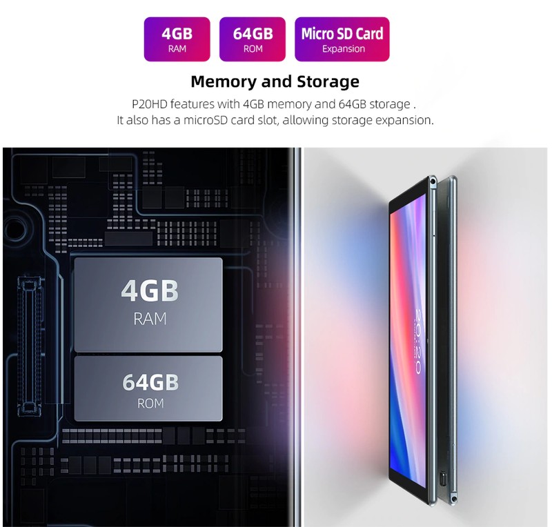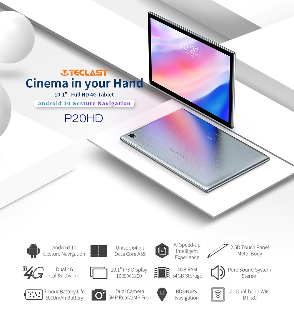 P20hd는 10.1 "IPS 디스플레이 1920x1200 해상도 주위에 내장되어 있습니다. 몰입 형 영화 시청 경험을 제공합니다.