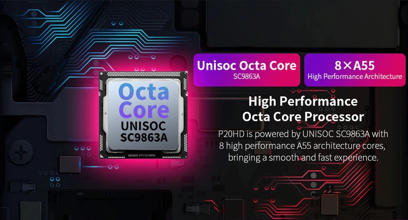 P20hd는 8 고성능 A55 건축술 핵심을 가진 UNISOC sc9863a에 의해 강화해, 매끄럽고 빠른 경험을 가져오고.