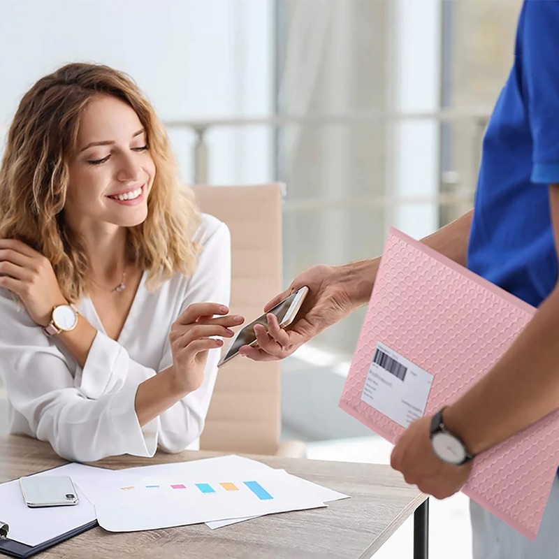 4. 자체 접착 봉투: 흰색 폴리 버블 메일러 자기 접착 tamperproof 물개와 함께 제공됩니다. 봉투가 봉인되면, tampering의 눈에 보이는 징후없이 열 수 없습니다. 우편자의 매끄러운 표면은 우표와 주소 라벨을 쉽게 붙일 수 있습니다.