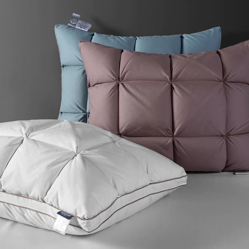 완전한 안락: 우리의 베개는 당신의 머리, 어깨 및 목 지역을 최선 지원을 제공하는 주의깊게 선정된 순수한 백색 거위 아래로 그리고 2-4cm 우수한 백색 거위 깃털로 합니다. 그들은 모든 유형의 슬리퍼를 위해 완벽합니다: 뒤, 측 및 위.