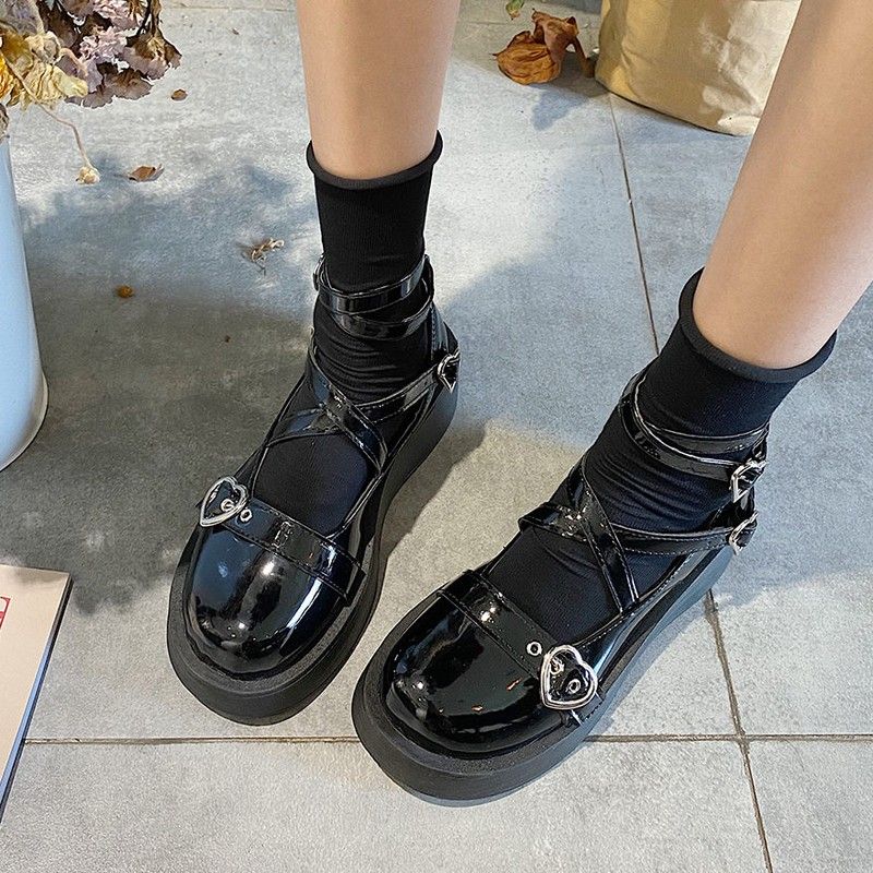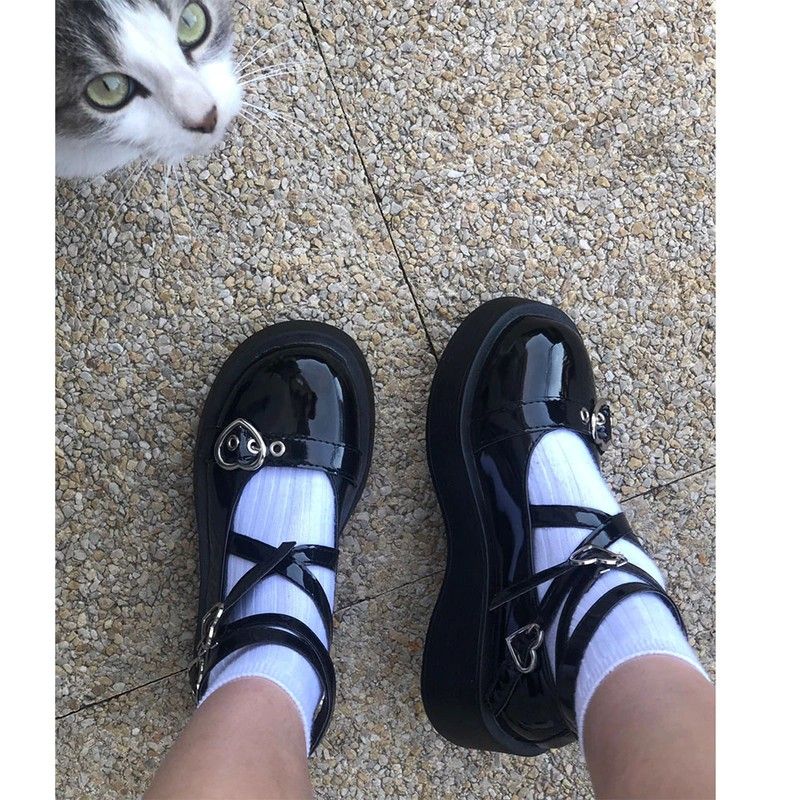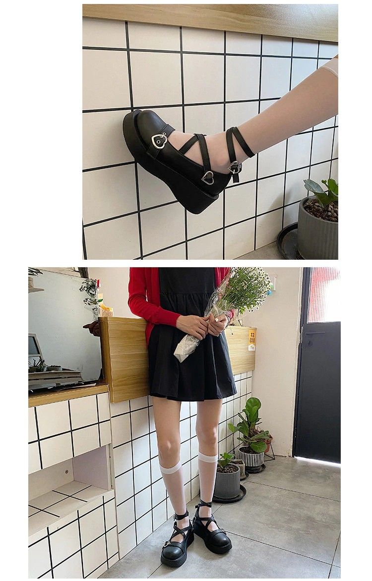 Loli 매일 달콤한 로리타 신발 플랫폼 라운드 헤드 두꺼운 뒤꿈치 크로스 붕대 여성 신발 얕은 입 kawaii 신발 코스프레