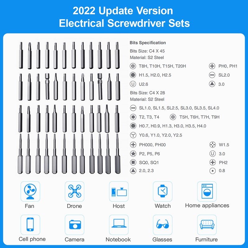 ● 9 종류, 24pcs S2 강철 정밀도 조금, 60HRC 까지 경도, 거칠고 durablem는 주류 전자 제품 및 새로운 작은 가전 제품 분해 및 집합의 필요를 충족시킵니다.