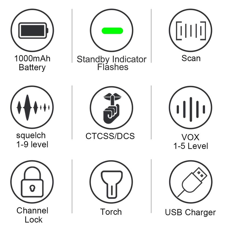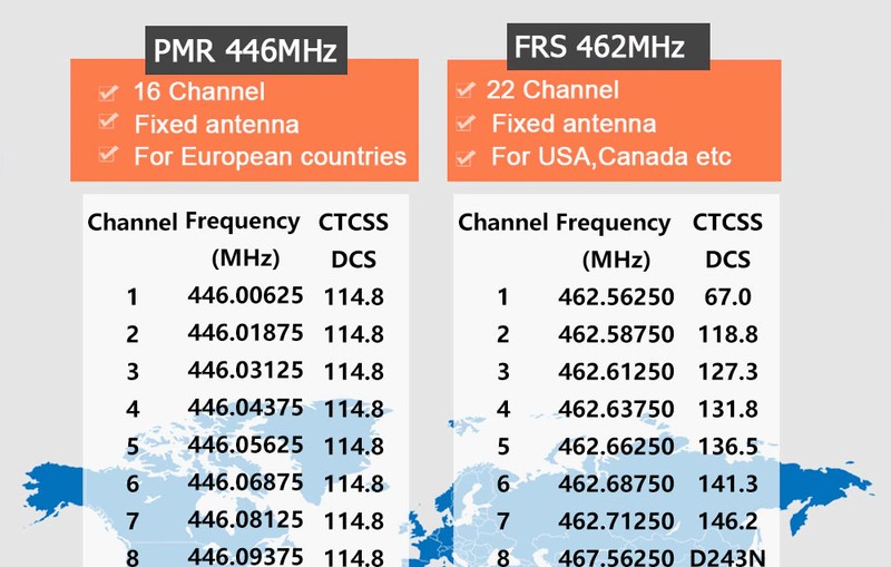 주파수 범위 : PMR 446 또는 FRS 462 + 467 MHz