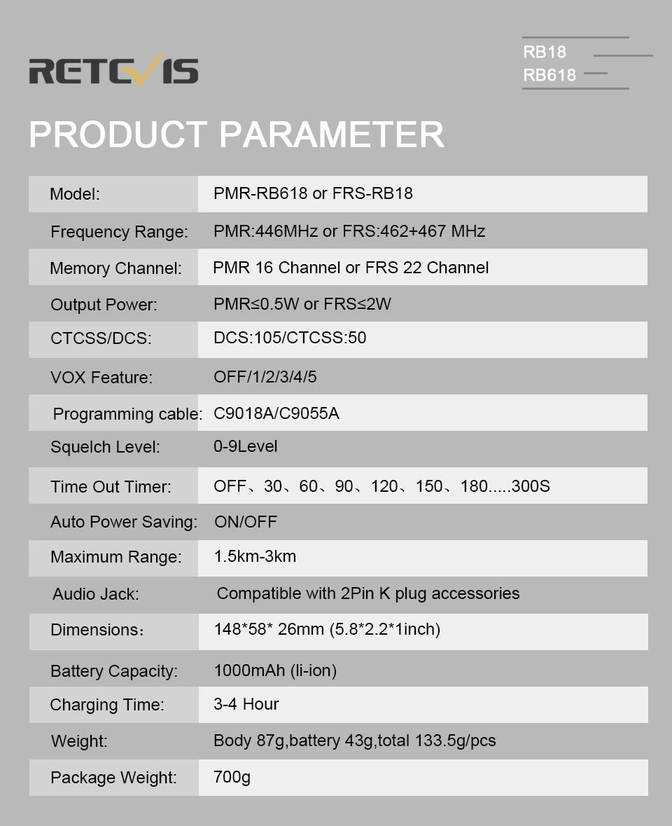모델 번호 : PMR : RB618 또는 FRS : RB18