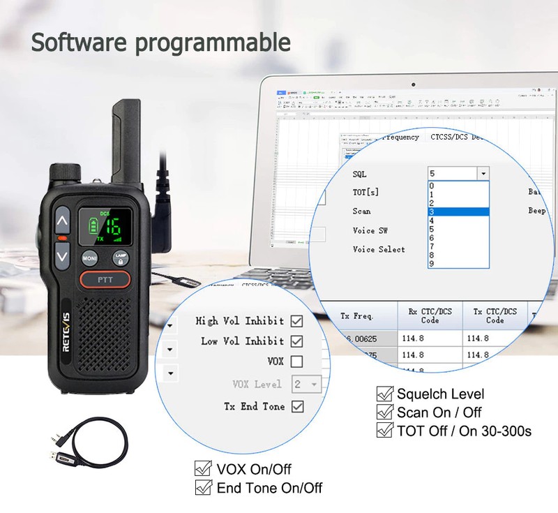 프로 그래 밍 케이블 을 사용 하면 프로 그래 밍 소프트웨어 를 통 해 무전기 에 대해 재 프로 그래 밍 을 할 수 있다.워키 토키의 주파수를 변경하고 프라이버시 코드, VOX 기능, 스 퀠치 레벨 등을 설정할 수 있습니다.